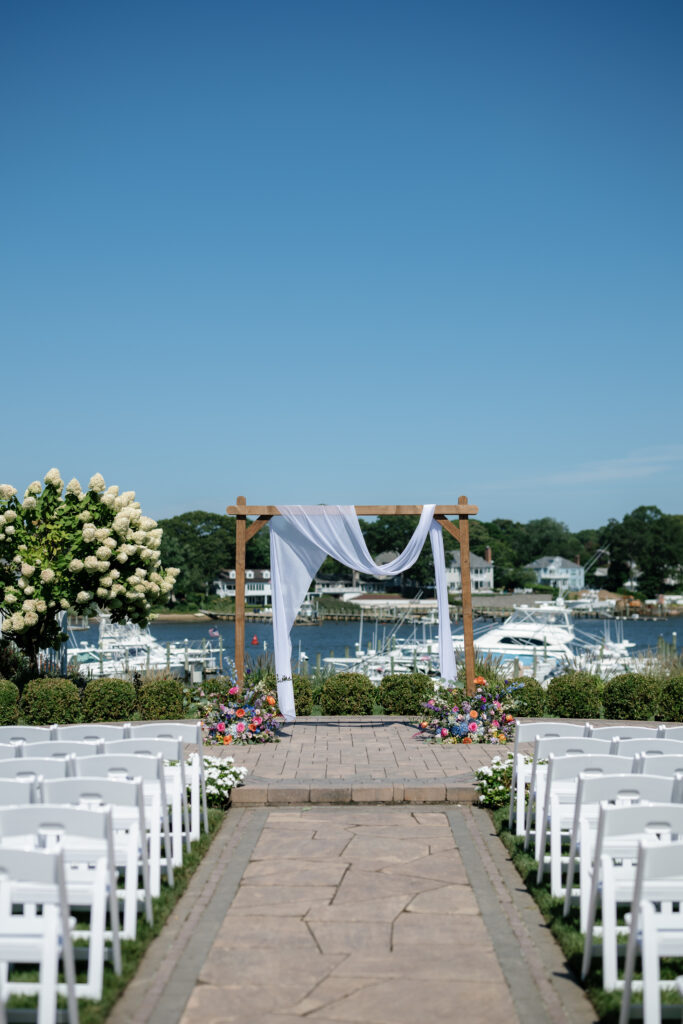 Shore Vibes: “The yacht club provided a unique opportunity to be right on the water without the hassle of a beach wedding with wind and sand,” says Laura. “It was private, offered different spaces for each portion of the day, had beautiful views, and the white tent, with sparking lights, directly on the water could not be beat.”