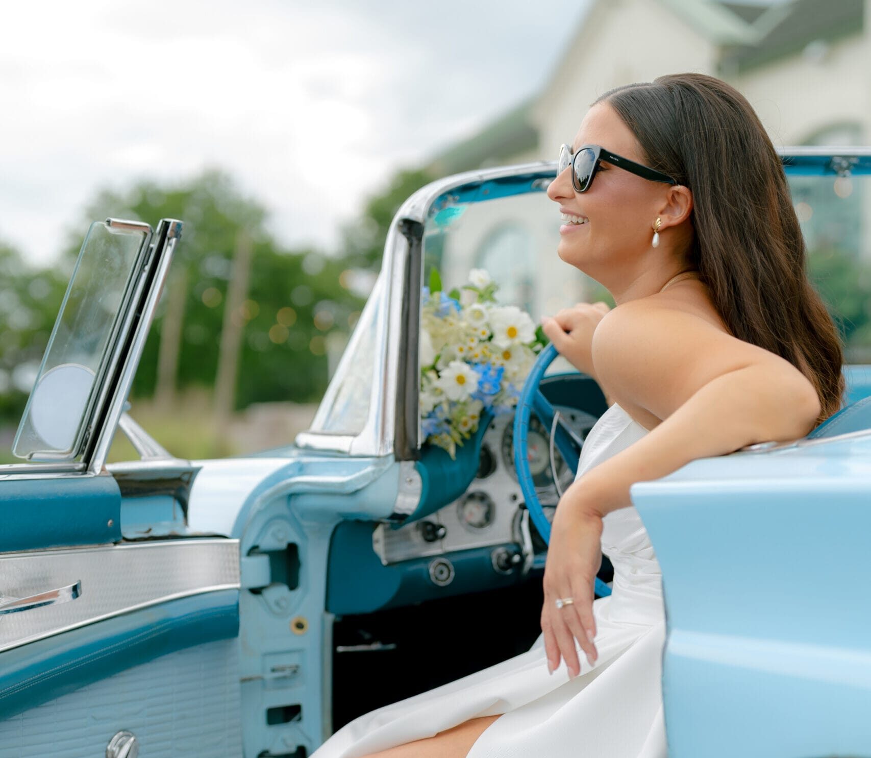 Rent an old-school Cadillac or a vintage Rolls Royce in blue to create a really fun backdrop for photos.