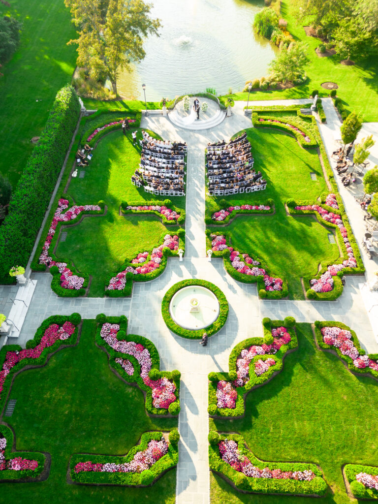 When we say gardens, we mean reception venues with acres of planned gardens full of blooming peonies, roses, seasonal flowers, boxwood, lush green lawns and flowering trees that create the feeling that you’ve entered your own secret garden.