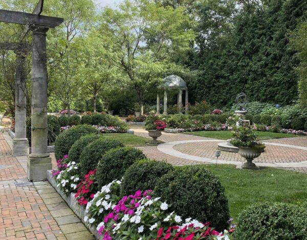 The fresh air, a green carpet aisle, the sun starting to set, nature’s vibrant colors and the sweet aroma of flowers.