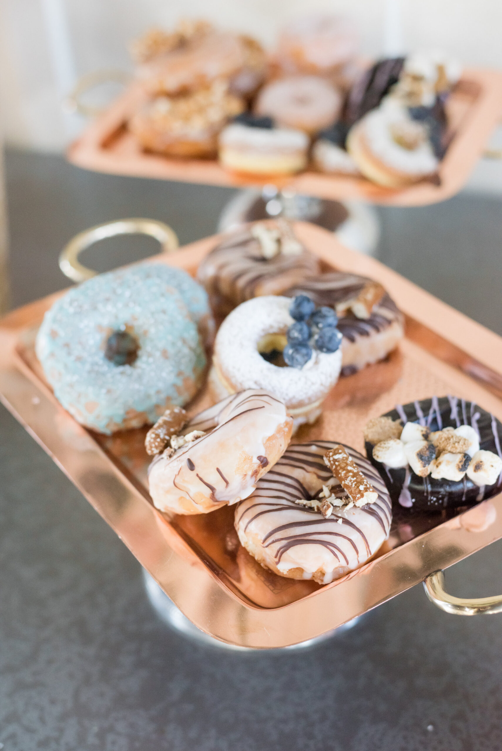 Who doesn’t love doughnuts? We can’t think of a better sweet send-off for your guests. This irresistible dessert has been a yummy trend at weddings for a while, and we can see why. Don’t get us wrong, we love formal wedding cake. But there’s something special and extra sweet about wedding doughnuts—the perfect handheld goodie. In addition to the large variety of flavors and toppings, there are countless creative ways to showcase these delicious treats. Here are five decadent ideas for serving this favorite wedding dessert.