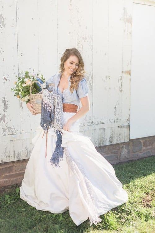 9.) Basket of Blooms ~ A basket of blooms is the perfect bouquet alternative for a country bride. Image by: Jackie Averill