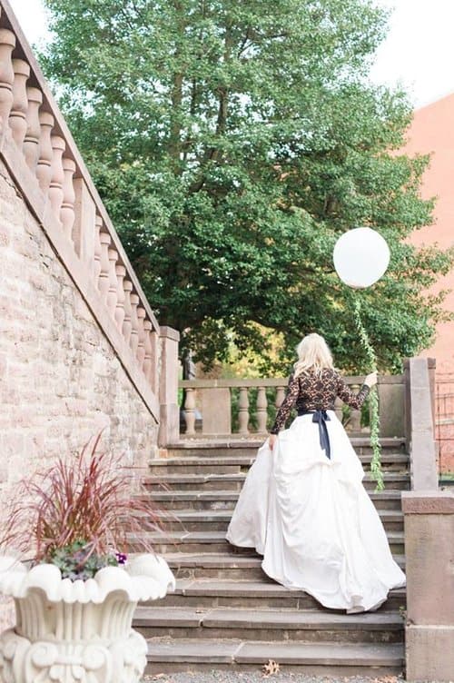 7.) Balloons ~ Oversized Confetti filled balloons with trailing greenery vines are just dreamy. Image by: Susan Anderson, Something Blue Photography