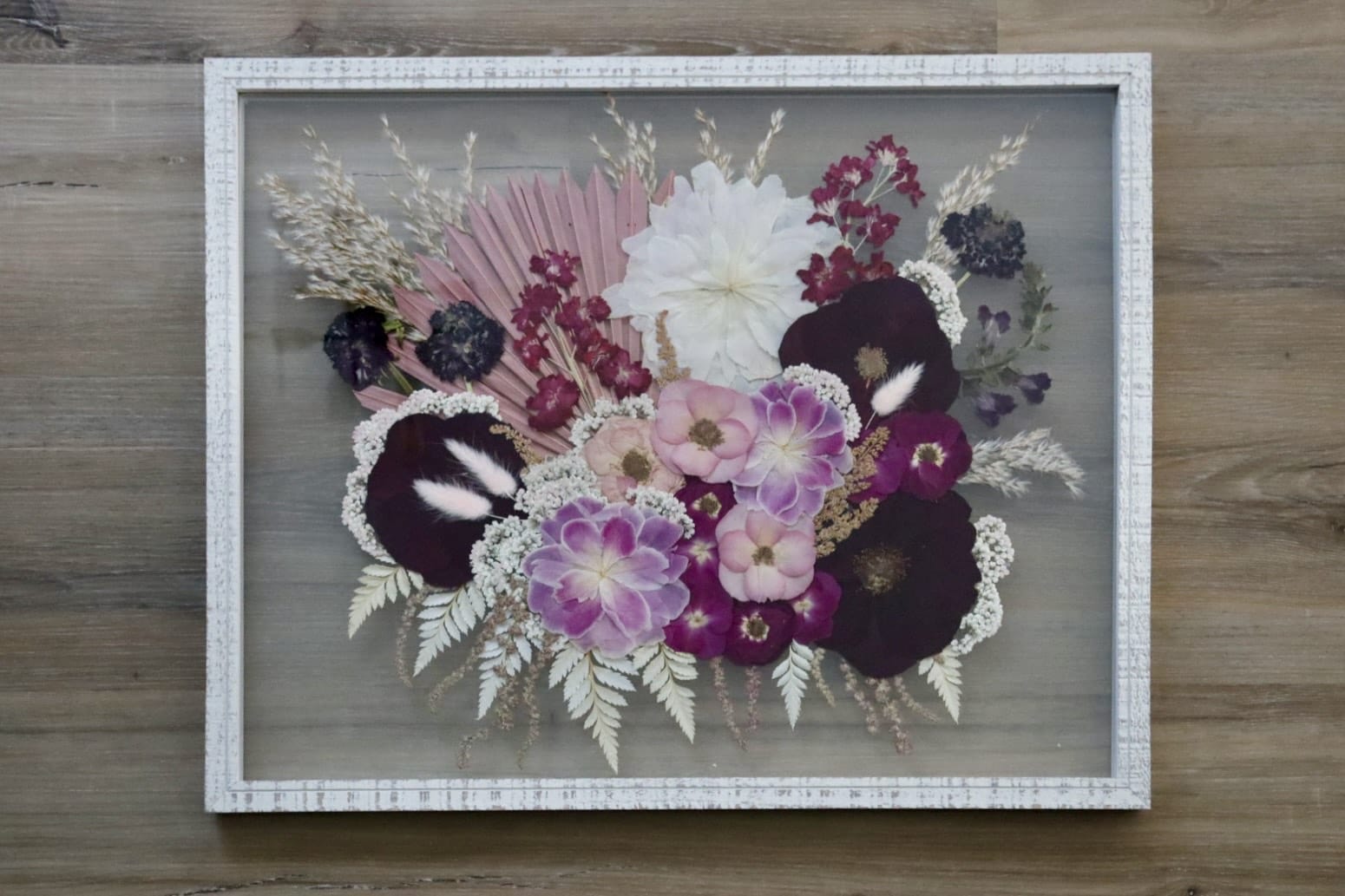 Enjoy your wedding bouquet year after year when blossoms are professionally preserved in a keepsake frame by Lakefront Floral, located in Lake Hopatcong. Prices start at $190; @lakefrontfloral.