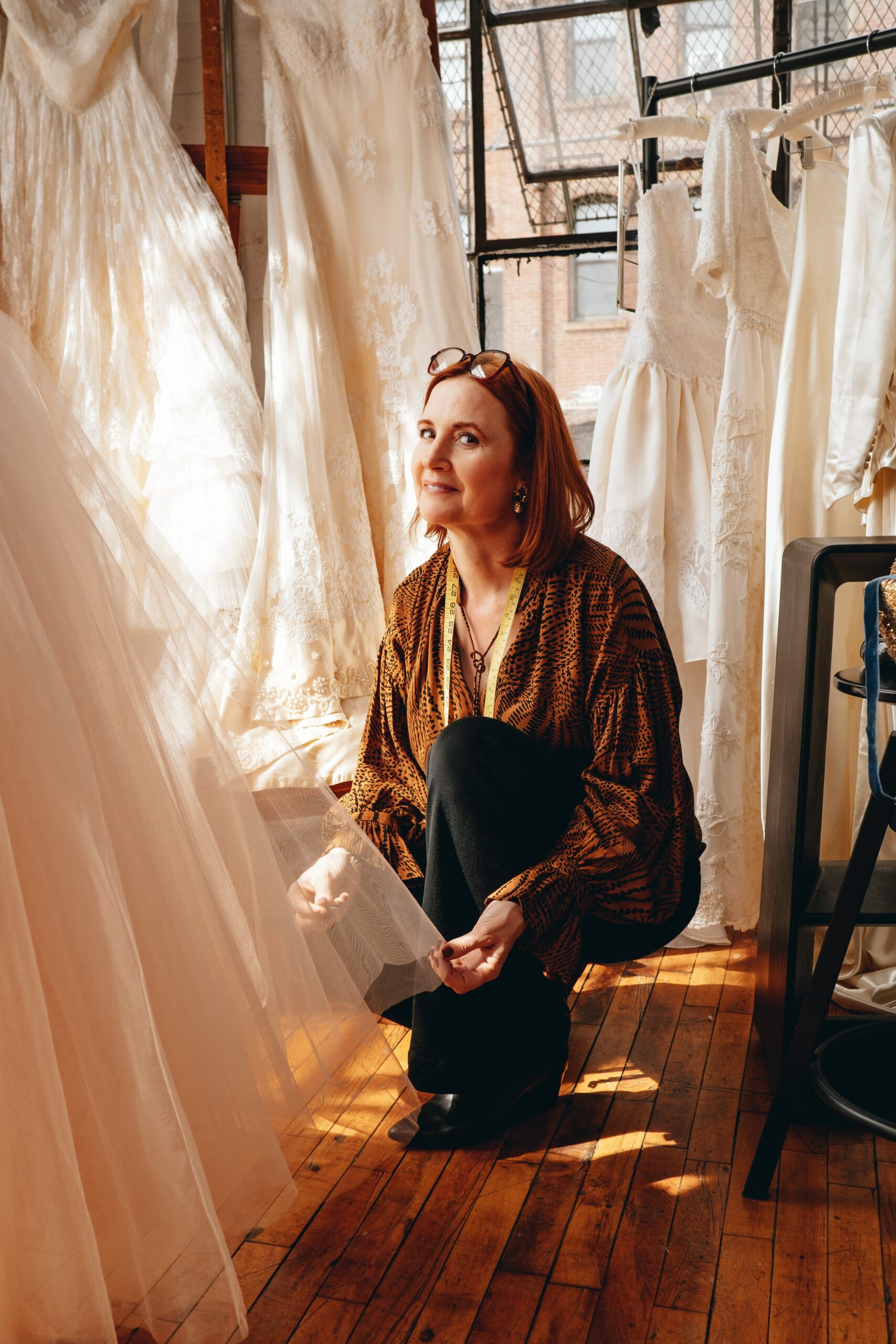 Christine, who worked as a designer in the bridal industry for many years, was inspired by her environmentally conscious Gen Z daughters—and her love of designing wedding gowns—to step out on her own and open Maybelle in 2021.