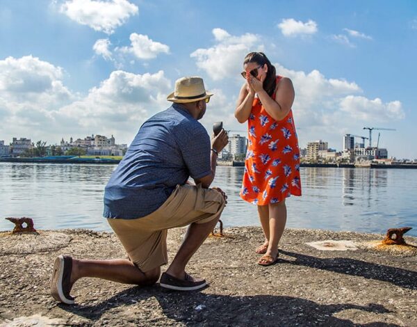 Karen swiped right on Edouard in 2015 and two years later, he popped the question on a "fake" engagement session in Cuba!