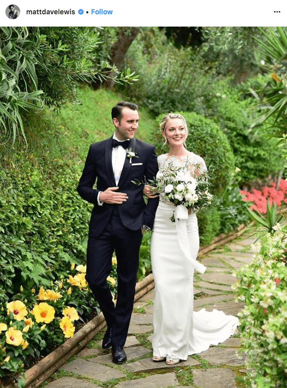 Harry Potter actor Matthew Lewis posted this newlywed photo of himself with now wife Angela Jones on May 28, 2018.