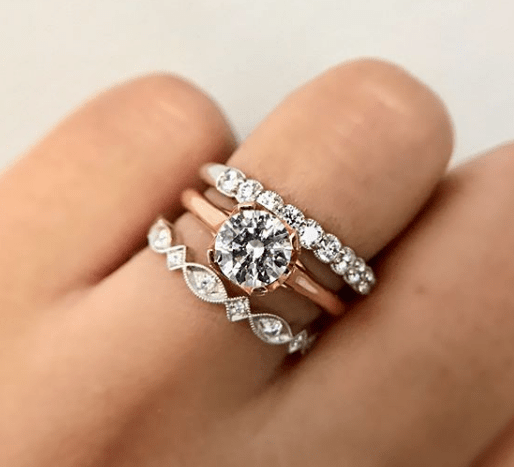Although it has been around for a little while now, rose gold isn’t going anywhere! The light pink metal has been gaining popularity in recent years for engagement rings and even wedding bands. The color flatters almost all skin tones and lends itself beautifully to a beautiful diamond.