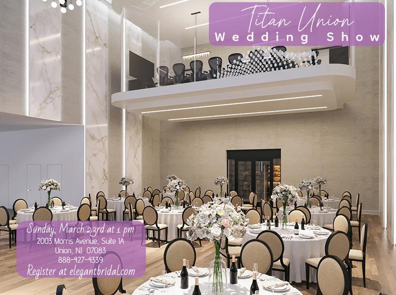 This venue is a must see! In the center of Union, NJ it is straight our of Manhattan! The epicenter of activity in Union Twp., the Titan Union Event Center is a historic and beautiful place for your special event. It is the premier location for weddings, engagement parties, showers and more. You’ll find distinctive spaces for your special gatherings from the 200-person ballroom to the skylight atrium, rooftop terrace with views of New York City, and the Vault lounge, a unique space that originally was the bank’s vault. It features_ – Multi-room event space 3-story ballroom Kinetic lights provide a visual artistic experience RGBW color changing lights to set the perfect mood Floating glass conference room Vault lounge Bridal suite Skylight atrium You have to see it to take it all in. Register today at elegantbridal.com!