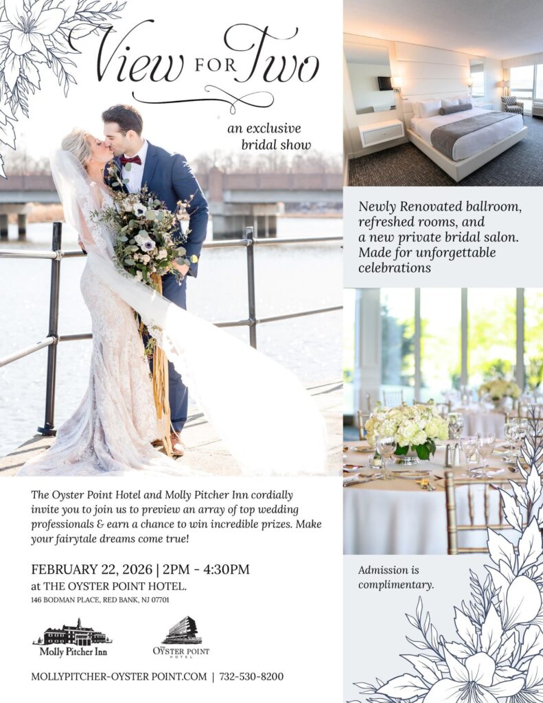 Unveiling a new chapter in elegance, The Oyster Point Hotel introduces its luxurious chic bridal suite, debuting at The View For Two. Nestled among newly renovated ballroom, guest rooms, this exquisite retreat offers brides and bridesmaids a private space to prepare for their special day. Bask in the spacious, relaxing atmosphere enhanced with glamorous hair and makeup stations, and step onto a picturesque balcony overlooking the Navesink River for a breath of fresh air. Designed with photography in mind, the suite provides the perfect backdrop for capturing timeless moments. With easy access for touch-ups and outfit changes, complemented by our attentive staff, your wedding day preparations will be nothing short of perfection.