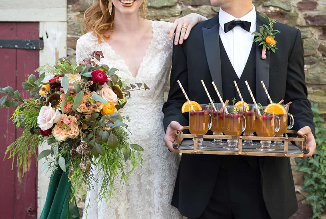 It’s no surprise that October is the most popular month to say I do! Warm sunshine, cool breezes and vibrant colors outside have couples saying yes to a fall wedding. Some of our favorite fall things are lush vibrant blooms, pumpkin-flavored desserts and apple cider signature drinks! We also love gorgeous delicate gowns with sheer sleeves like this Melissa Sweet stunner from David’ Bridal our bride Claire is wearing! We hope you enjoy this fall wedding inspiration at the gorgeous Rosebank Winery in Bucks County, PA. Credits:Photography: Ben D. For The Pros Weddings, Philly Branch Venue: Rosebank Winery, Newtown, PA Gown: Davids Bridal, Melissa Sweet Linear Lace Sheath Wedding Dress (#4XLMS251173) Tuxedo: Colemans Tuxedos, Millburn, NJ Hair & Makeup: Bangz Salon, New Hope, PA Rentals: Brillmans Rental Barn, Newtown PA Wedding Cake: The Caketeria, Newtown, PA Stationery: April Lynn Designs, Newtown, PA Couple: Claire Mahoney & Jared Siejk Styling & Design: Kristin Rockhill, Philadelphia, PA Article By: Kristin Rockhill, Philadelphia, PA