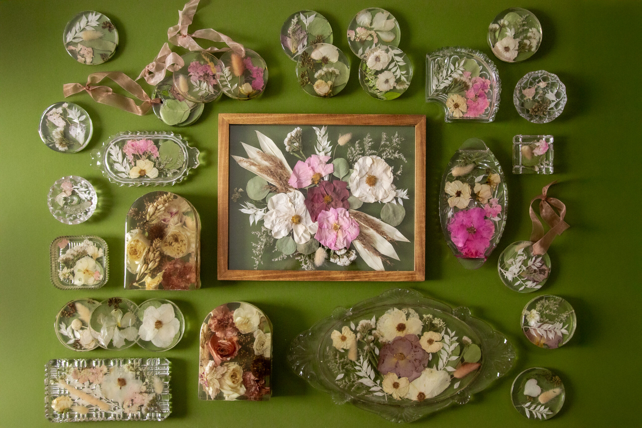 Looking for something a little more rustic? This wooden wall from Mirror Mirror by Dina in Brick Township features flowers and a fun message or monogram.
