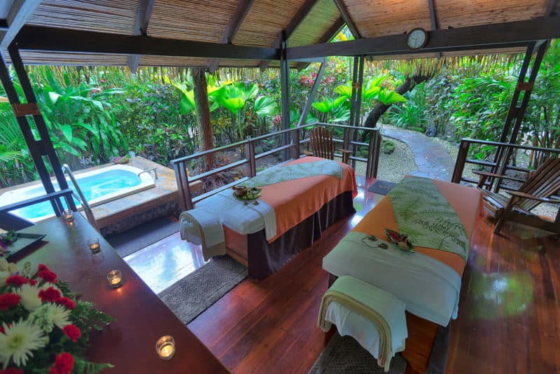You’ve just signed up for the biggest adventure of your life (hello, matrimony!). Top off your big day with a thrill-filled honeymoon at Tabacon Thermal Resort and Spa in Costa Rica. Set on more than 900 acres of tropical reserve in the foothills of La Fortuna’s Arenal Volcano, this getaway’s beautiful accommodations, on- and off-site activities and idyllic natural setting make a stay here pretty close to nirvana. The resort’s 103 guestrooms and suites are set a few paces from the reception desk, gift shop and Los Tucanes, one of Tabacon’s two restaurants. Guest rooms are serene with an elegant, minimalist vibe. Floors are tiled, lighting is sleek and low profile, and floor-to-ceiling sliders open to lush grounds. Spacious bathrooms feature dual sinks, again, modern and sleek; rainforest showerheads and river-rock shower floors. Rooms looking out on the Arenal Volcano are available, as are suites with Jacuzzis and private balconies.
