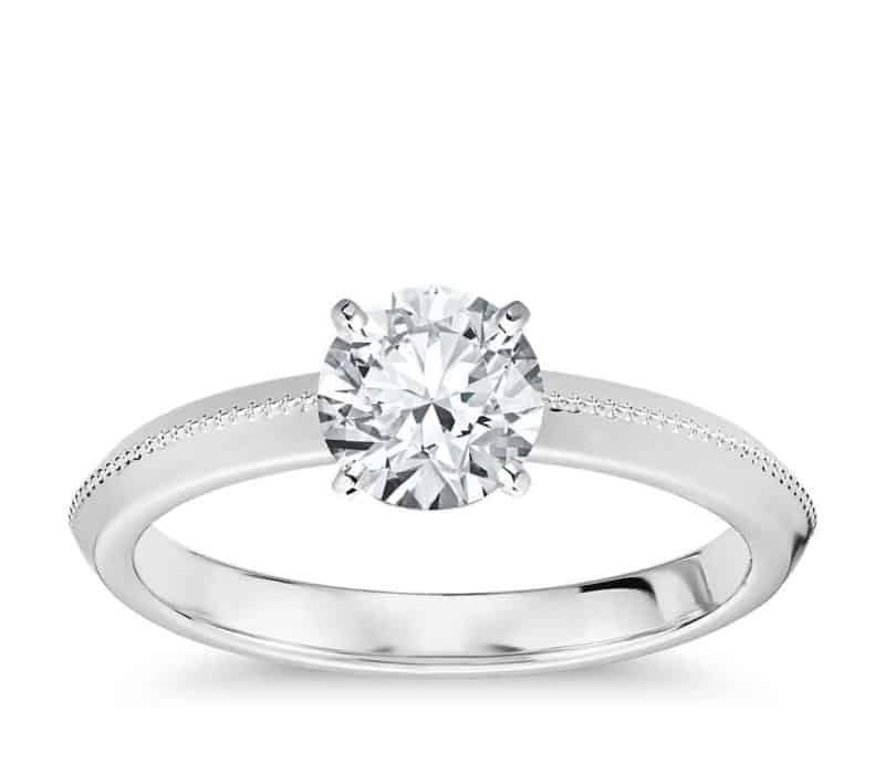1. Knife Edge. It’s a clean, but striking aesthetic that makes the solitaire diamond look like a real stunner.