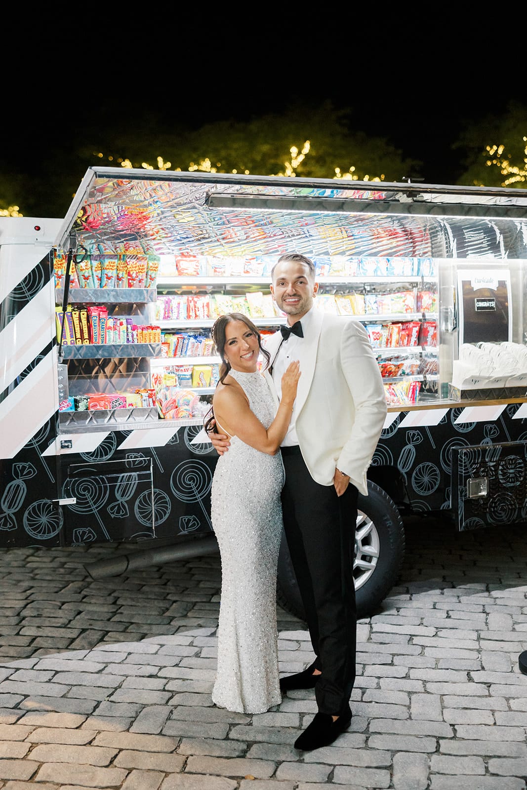 Why We Love It: A golden gown with a ton of shimmer was the perfect fit for her NYE’s wedding.