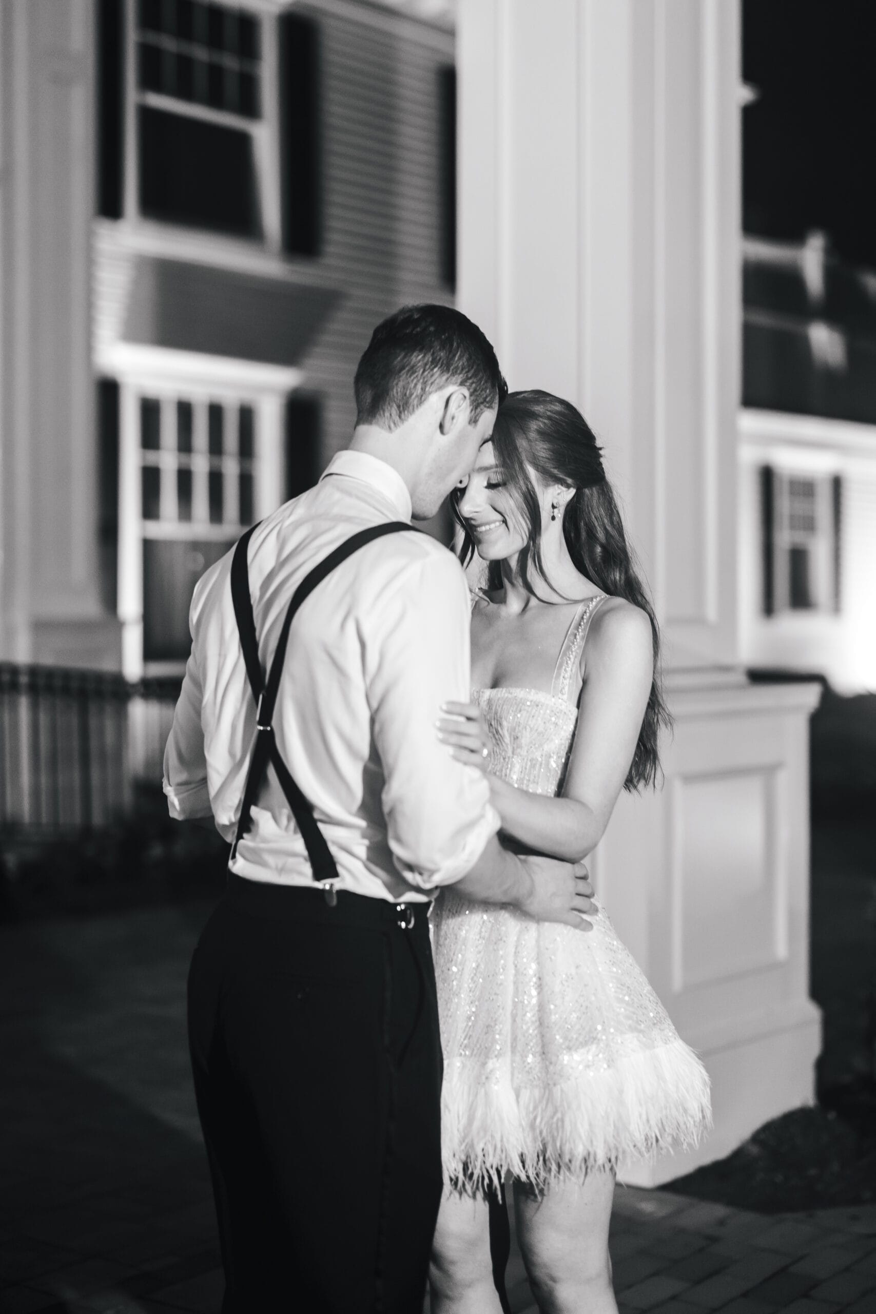 Why We Love It: For this bride’s NYE wedding, this fun and flirty reception dress was the perfect way to end the night. Plus, this feathery number was such a nice departure from her super-sleek, no-frills main dress.