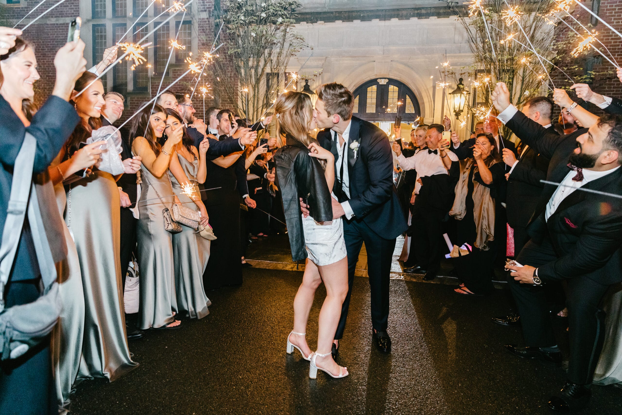 Why We Love It: A leather jacket always adds a bad*** vibe to any outfit, but bringing out the biker look on your wedding day feels rebellious in the best way.