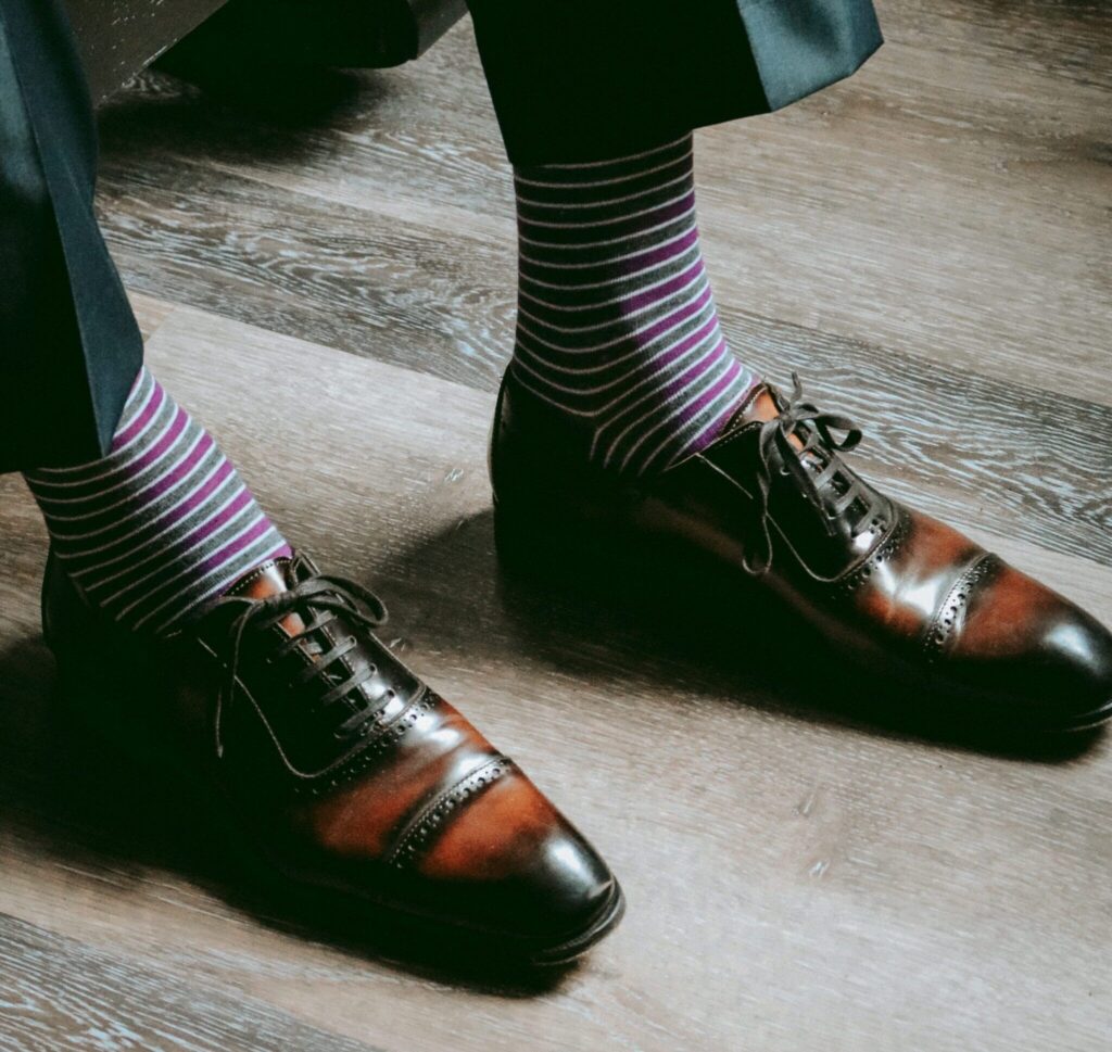Treat your groom and his guys to Southern Scholar socks for a fun wedding day look. Made with a special knitting process, these socks are built to stay in place; $25 per pair at southernscholar.com.