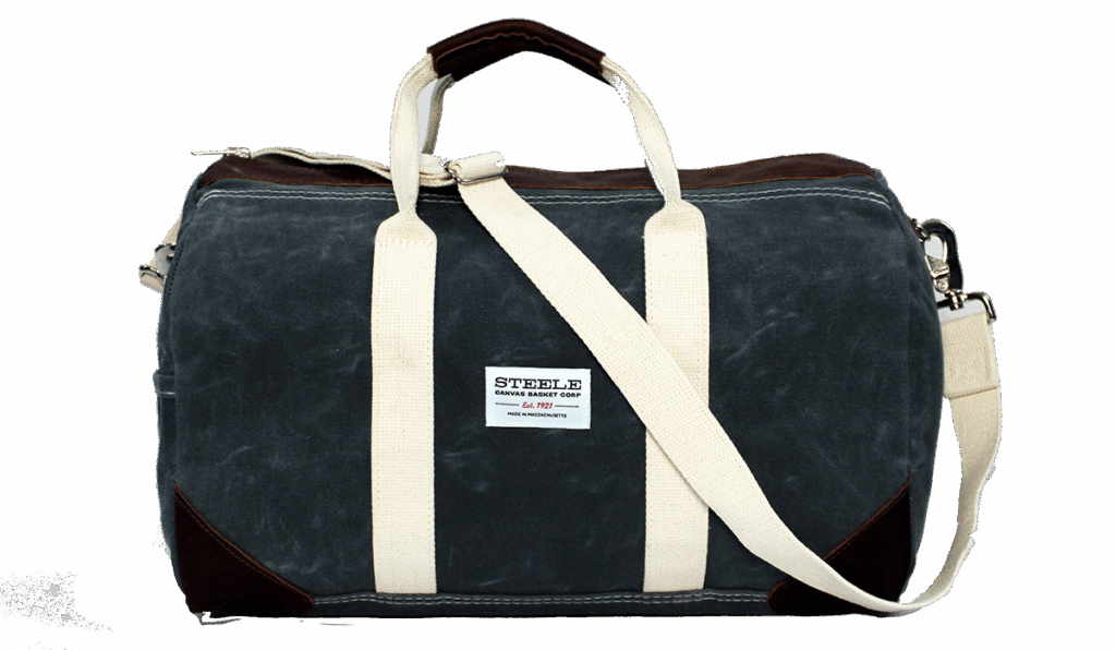 Stow wedding day essentials in this classic weekender travel bag. Designed with a leather handle, adjustable shoulder strap and roomy pockets; $149.95 at steelecanvas.com.