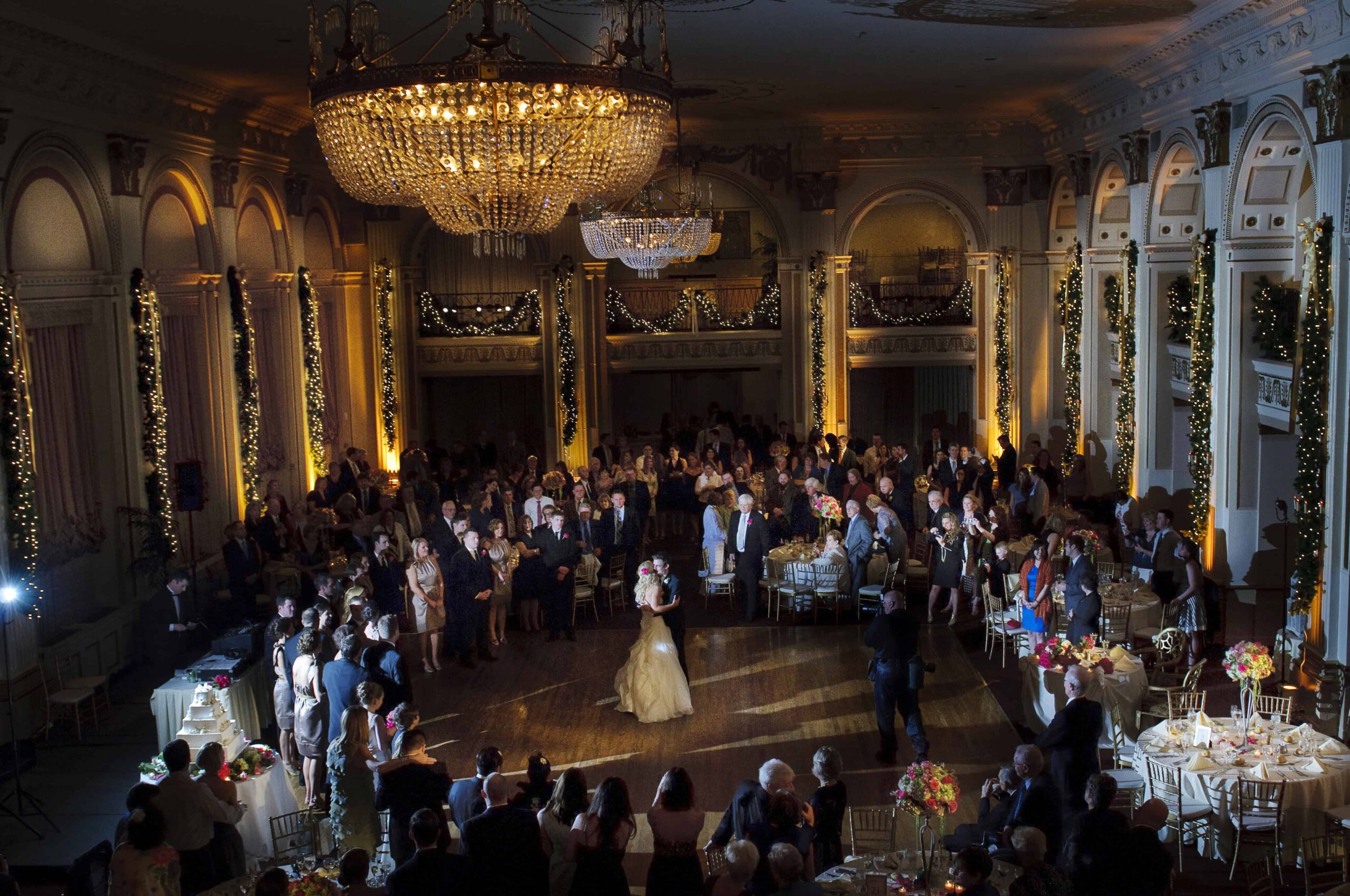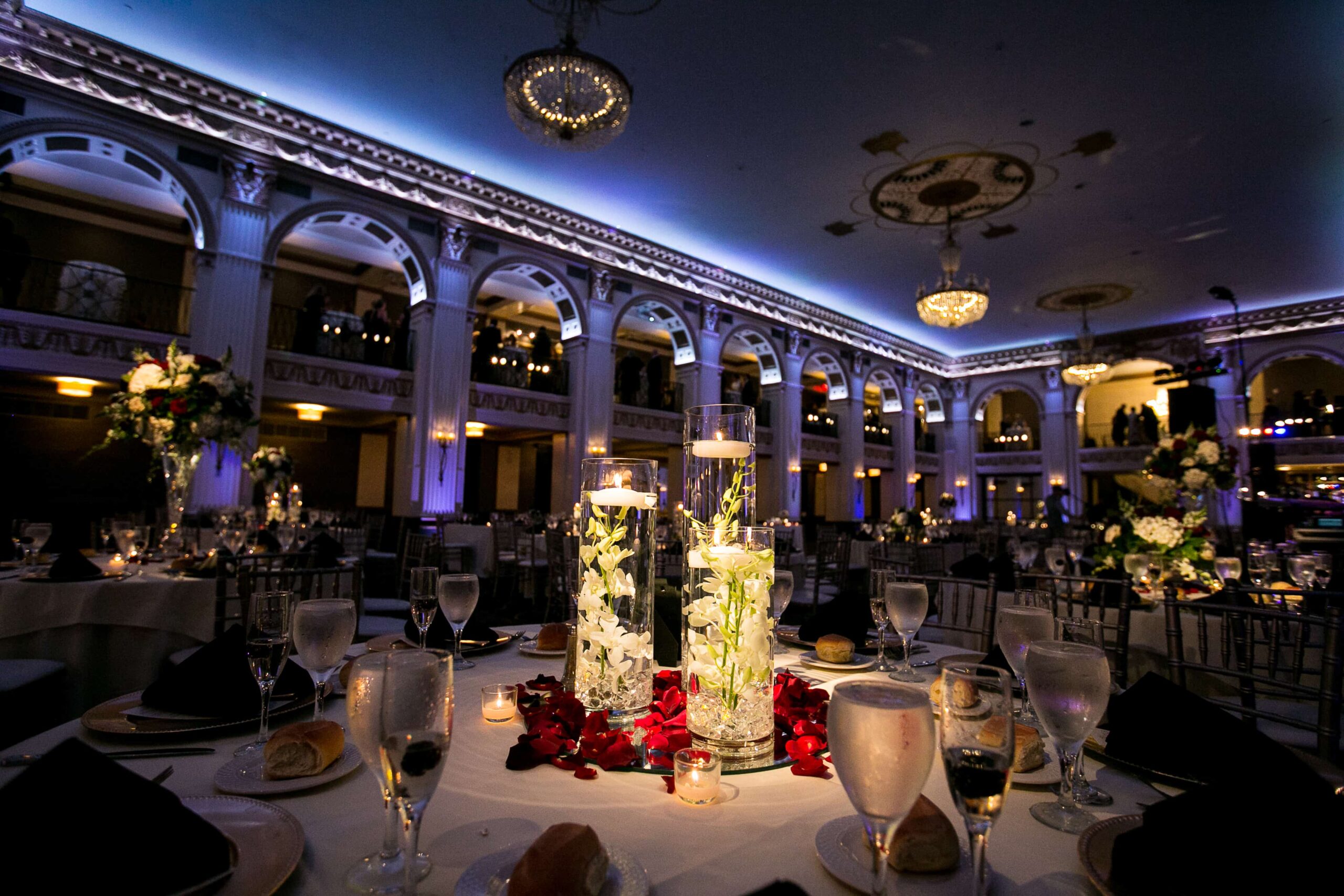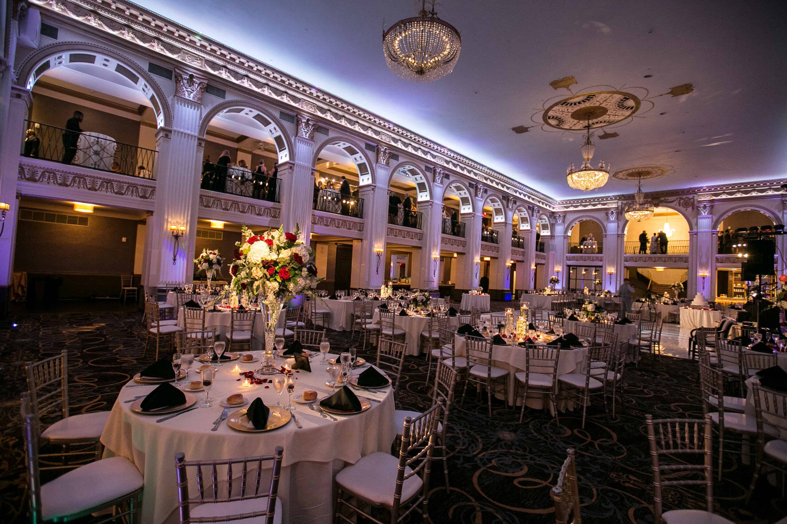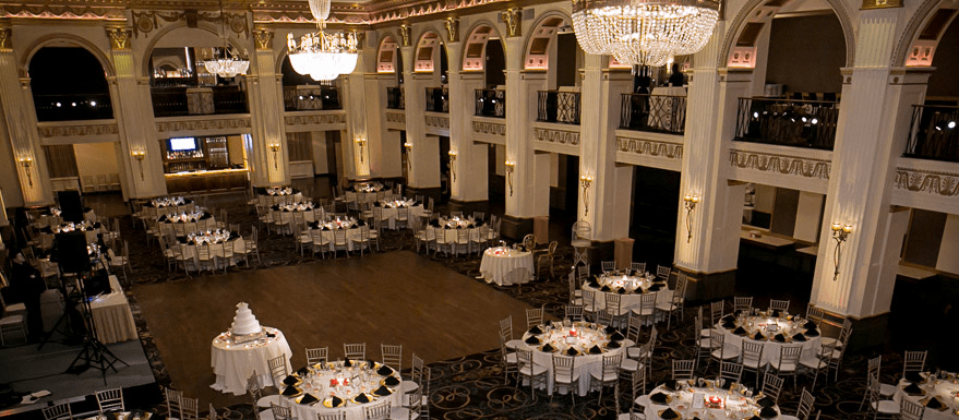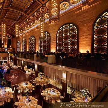 Upon entering this unique building in Philadelphia, you and your guests can be directed to the mezzanine level, which overlooks the palatial ballroom, for a relaxing cocktail and hors d’oeuvres reception. Scrumptious appetizers, full dinner menus and over-the-top dessert buffets await you and your lucky guests.