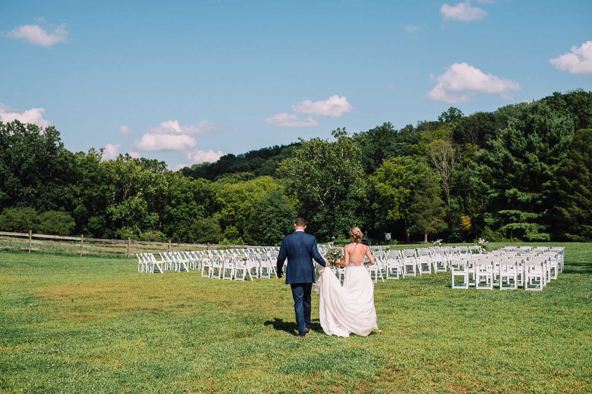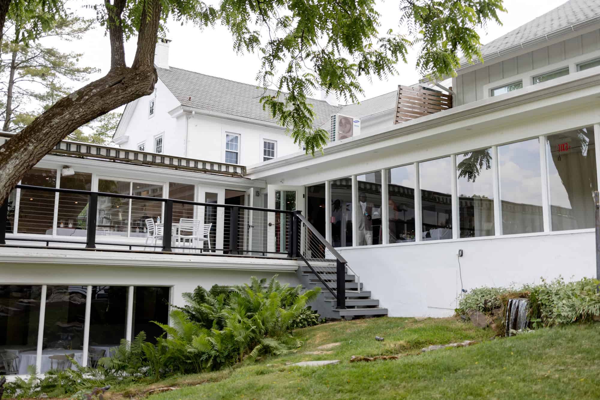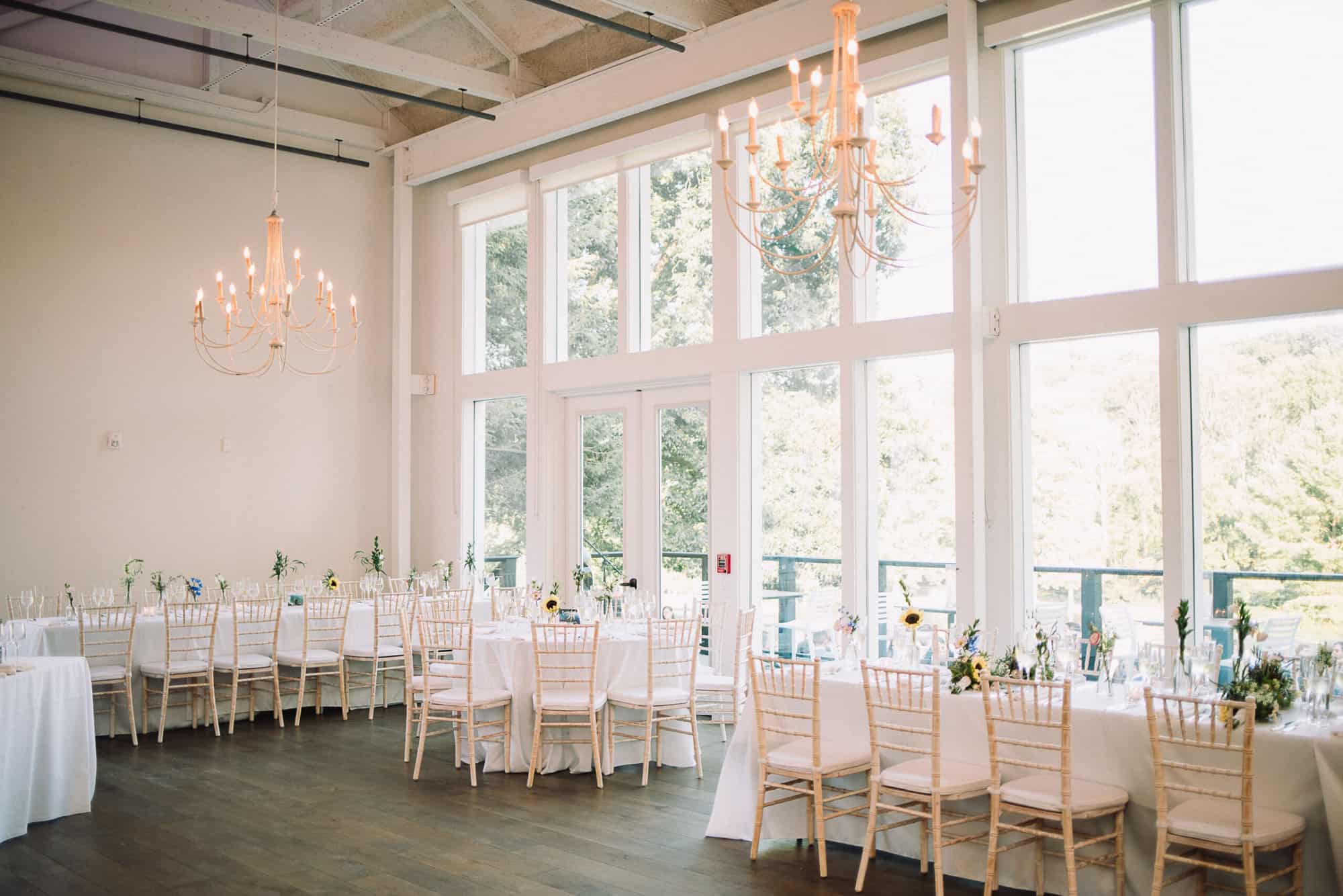 Cascade Lodge is a mid-century modern destination sprawled across 30 private acres of the Bucks County countryside. The property boasts stunning views of the surrounding landscape, with plenty of outdoor spaces for guests to explore and enjoy. In addition to a ballroom, there is a smaller space that includes a bar, wine cellar, and dining room, perfect for intimate gatherings such as rehearsal dinners or bridal showers.