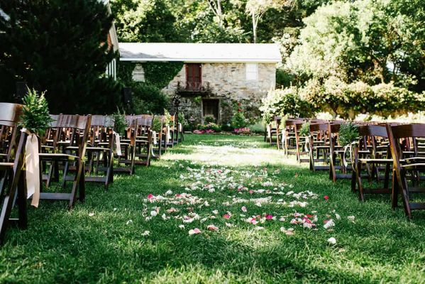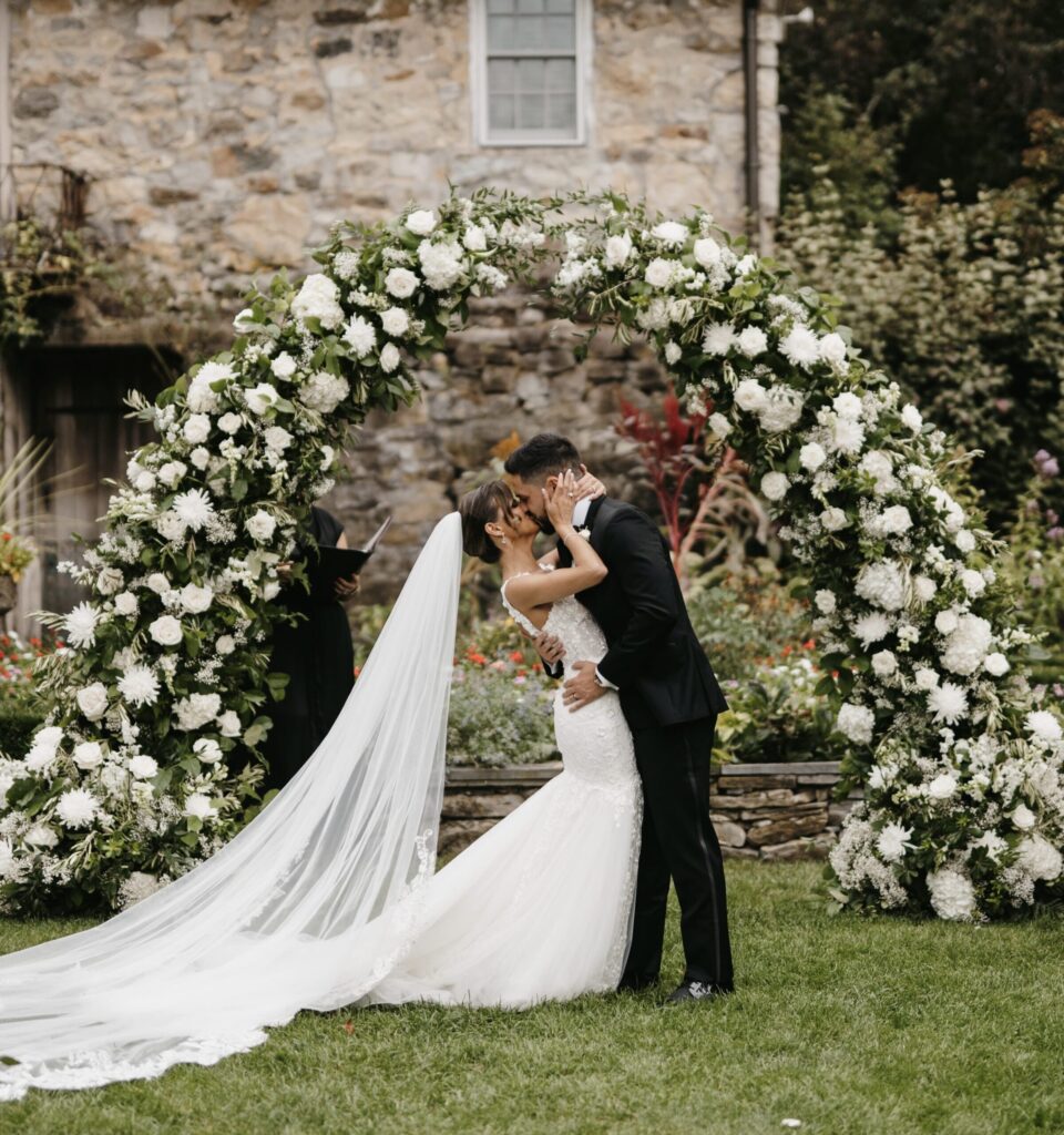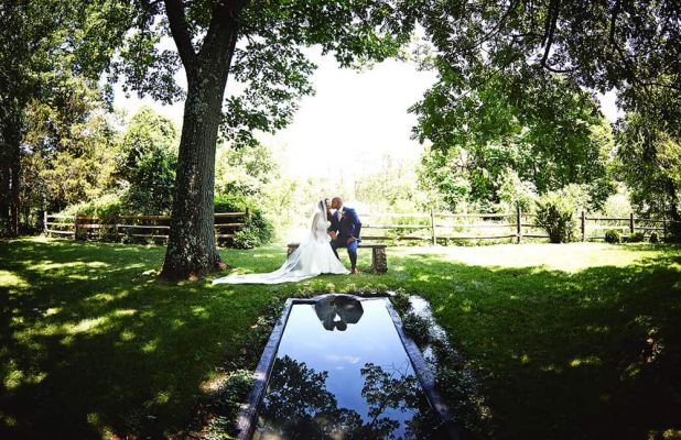 Crossed Keys Estate is one of the most charming wedding venues in New Jersey. Weddings are held seasonally here, from the first weekend in May to the last weekend in October. Arrive to your ceremony on the tree-lined drive and get married outside in the garden, surrounded by peonies and wildflowers. The lush meadows or the rustic playhouse are the perfect backdrop for your photos. Dance the night away under a gorgeous reception tent with a slate floor, surrounded by fire pits and cozy Adirondack chairs. Catering is provided by Celsos Caterers and floral and event decor is by their sister company, Event Designs by Katherine.