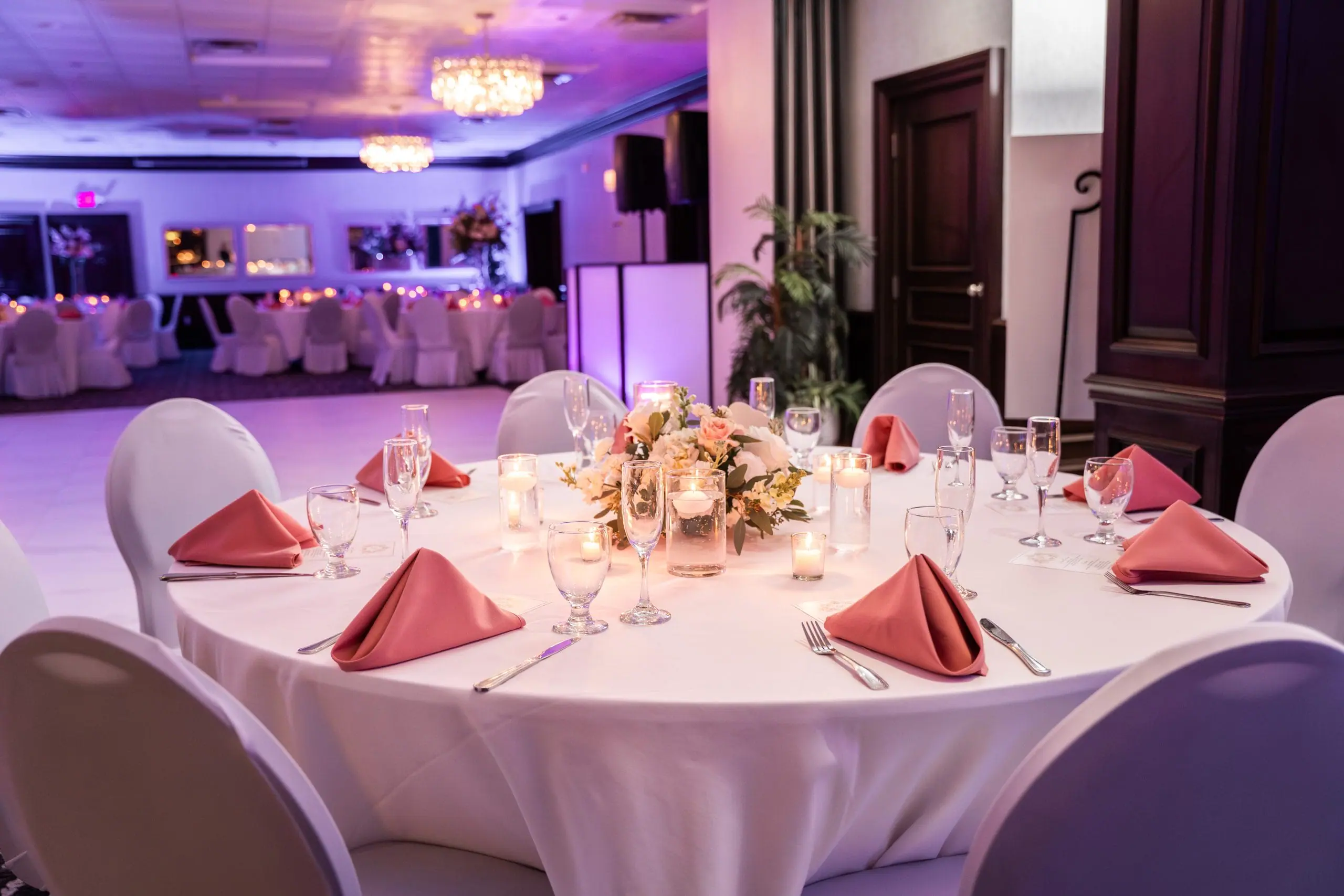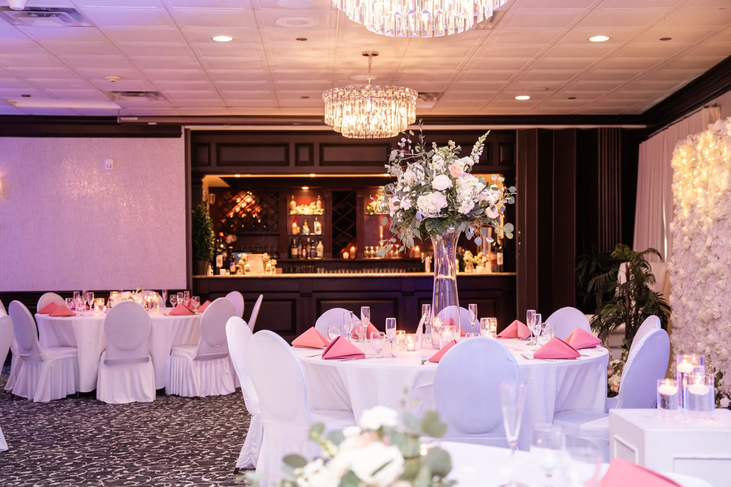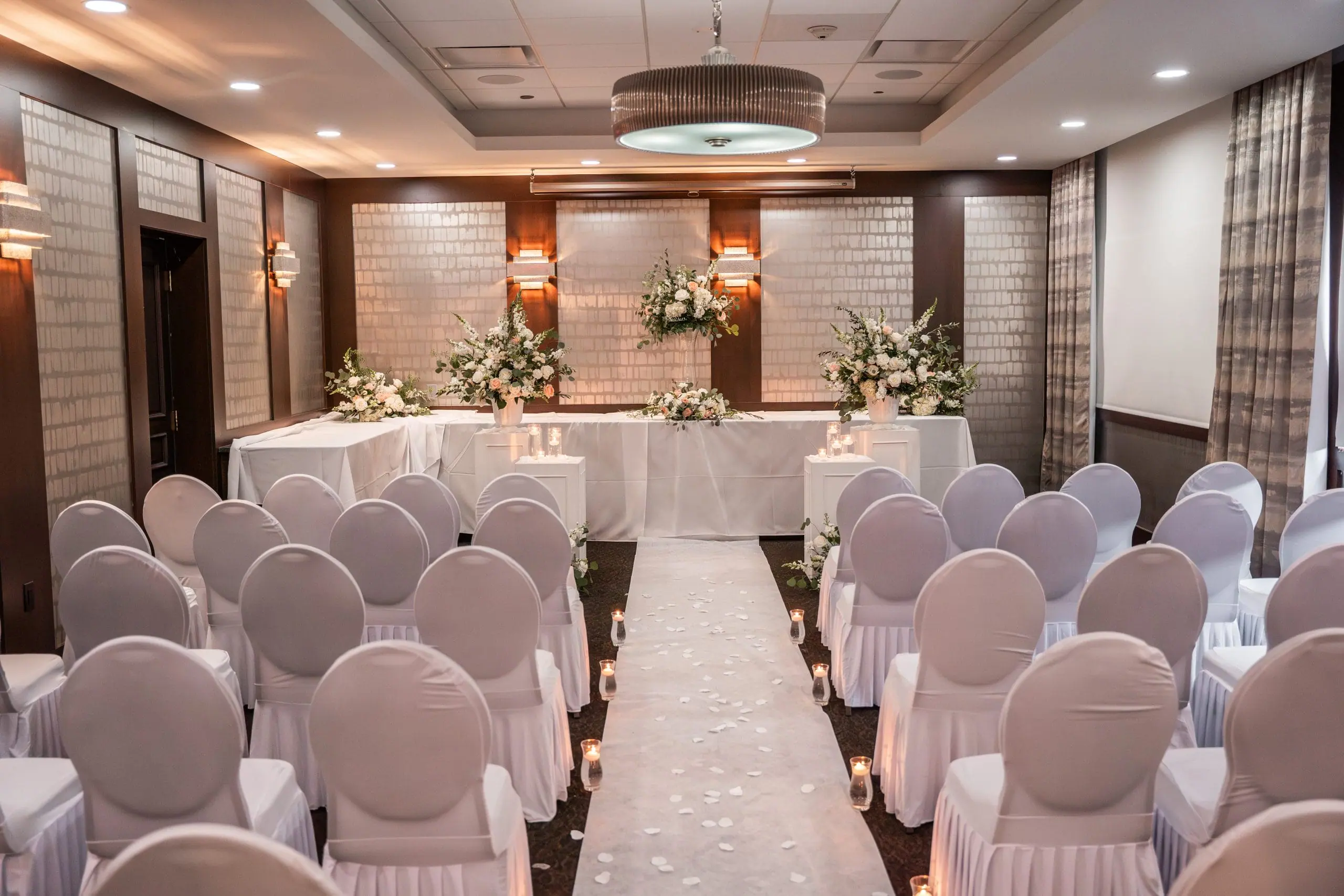 Convenience is paramount, with the venue situated within a hotel, allowing guests to stay on-site. The bride and groom receive a complimentary room on their wedding night, complete with a bottle of wine and chocolate-covered strawberries. An on-site bar remains open until 2 AM, perfect for after-parties.