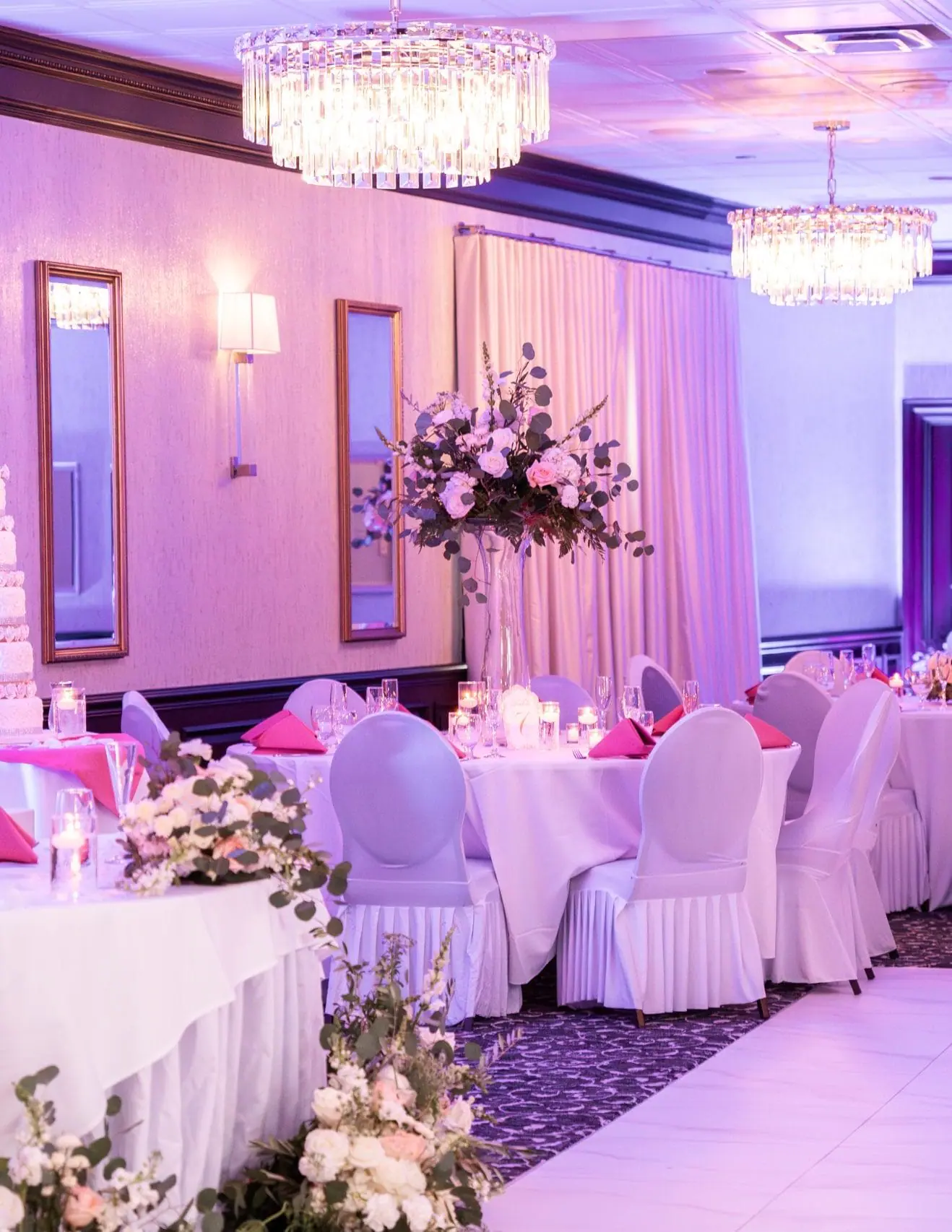 The Grand Ballroom, can accommodate up to 225 guests, and provides a spacious and elegant setting for ceremonies and receptions. Its flexible layout caters to various event styles, ensuring your vision comes to life.