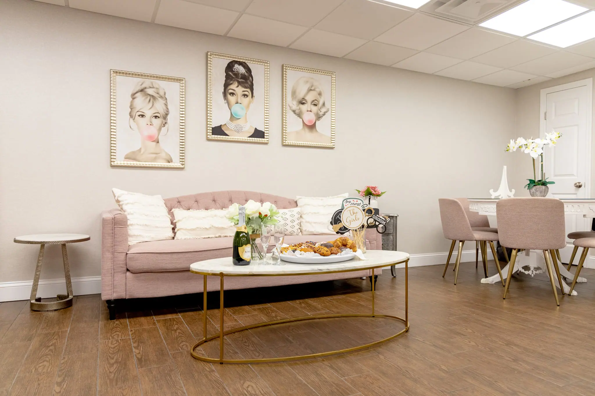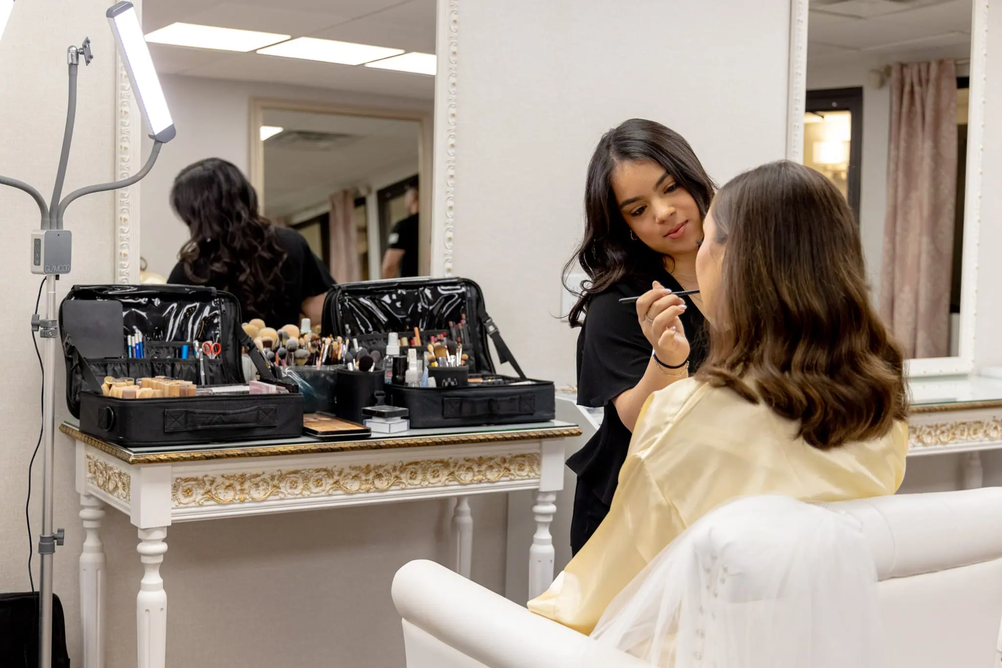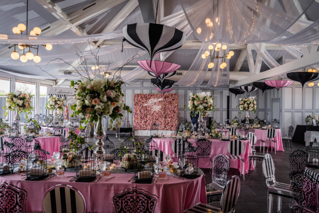 For pre-wedding preparations, the Glam Room and the new Rose Room offer comfortable spaces for bridal parties to get ready, enjoy mimosas, and savor bites from a specialty menu.