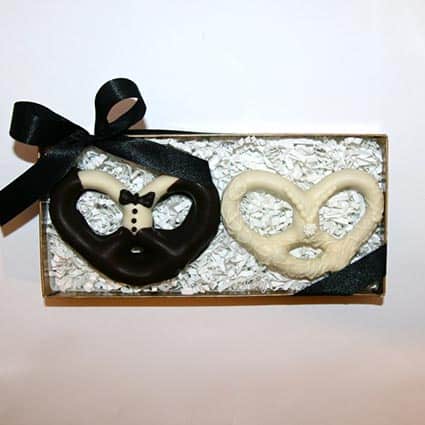 Enjou can make chocolates that match the theme of your wedding and use bows in the color scheme of your party. Chocolate favors can be molded in any shape you desire: hearts, flowers, animals, high heels and more. Ask about bridal shower favors, rehearsal dinner goodies, wedding reception favors and amenity baskets for your out-of-town guests.