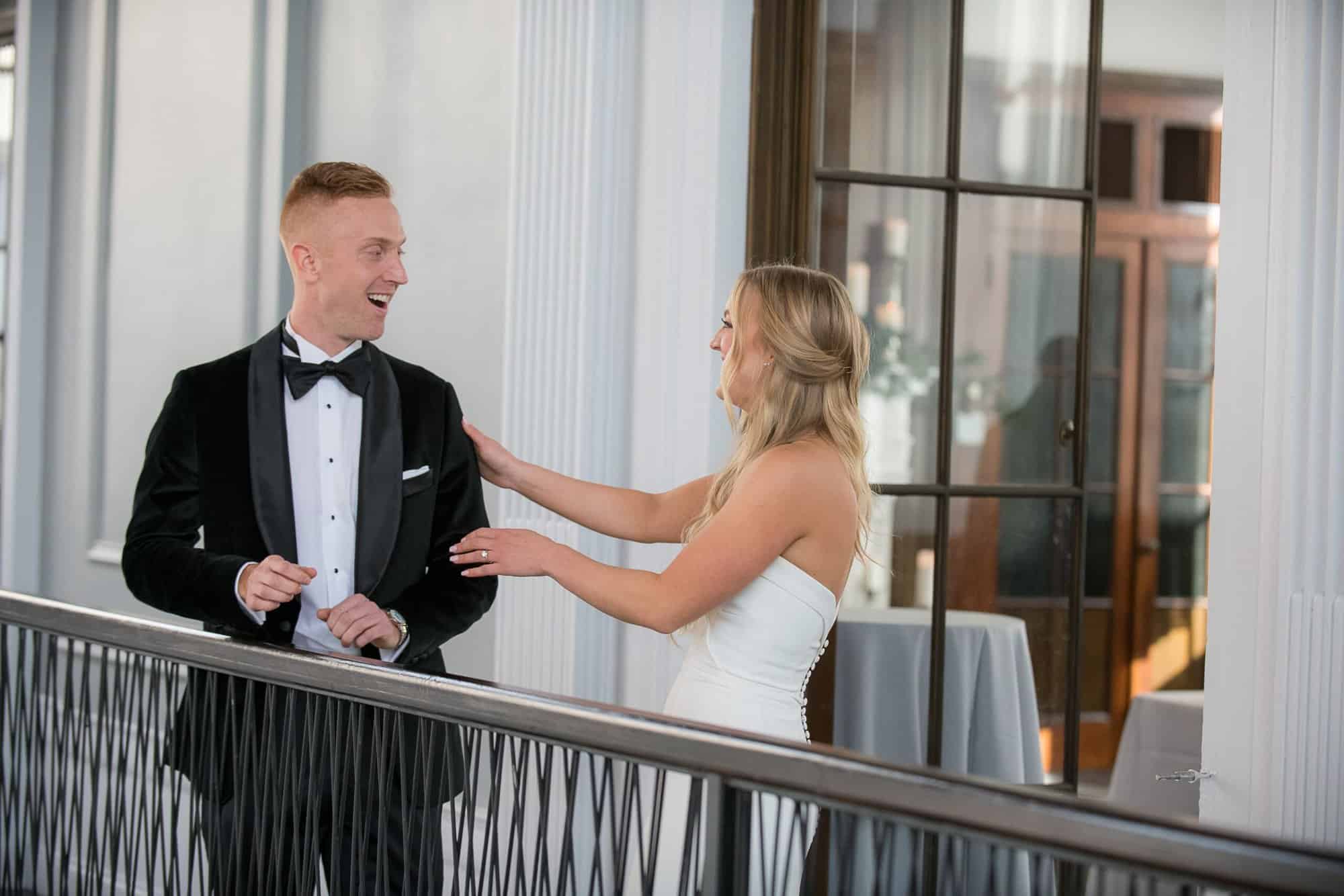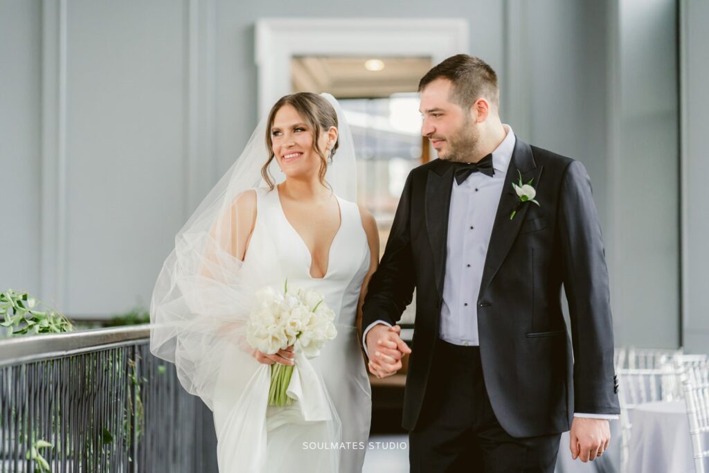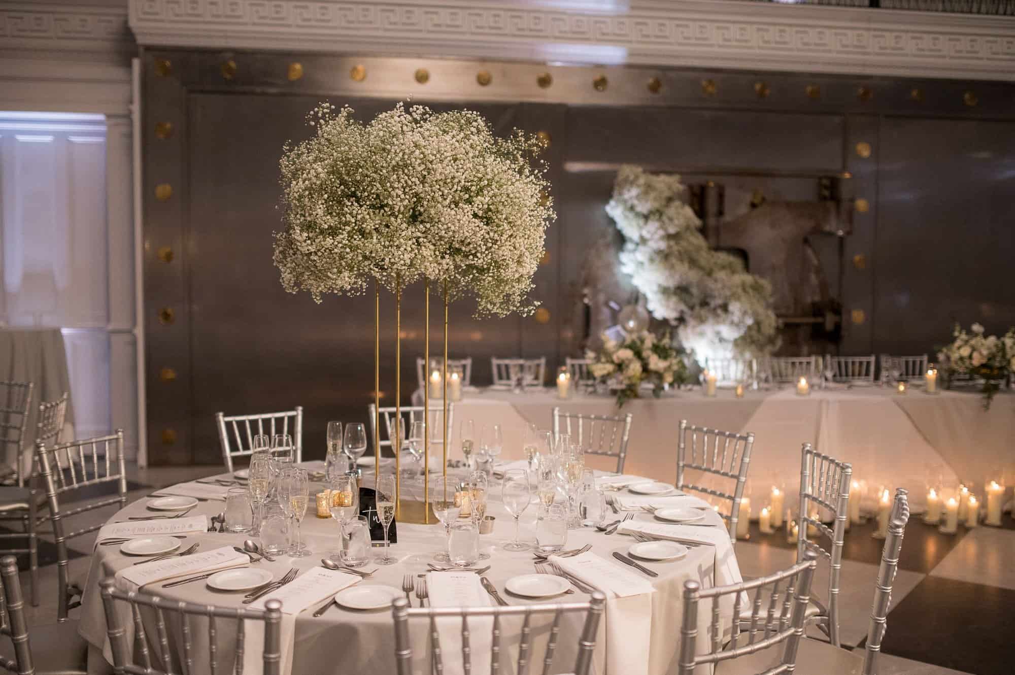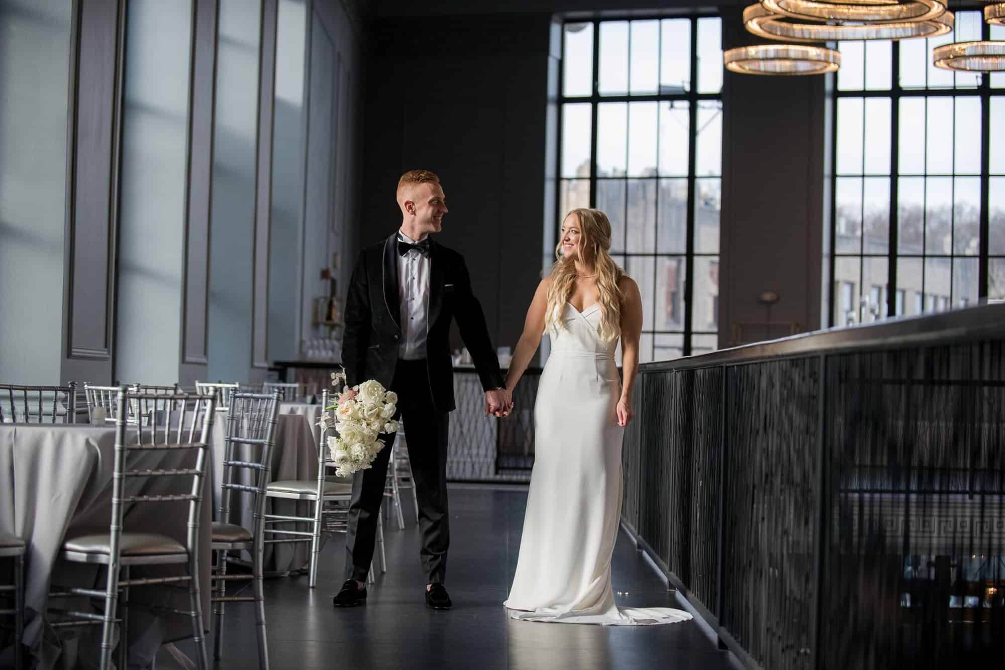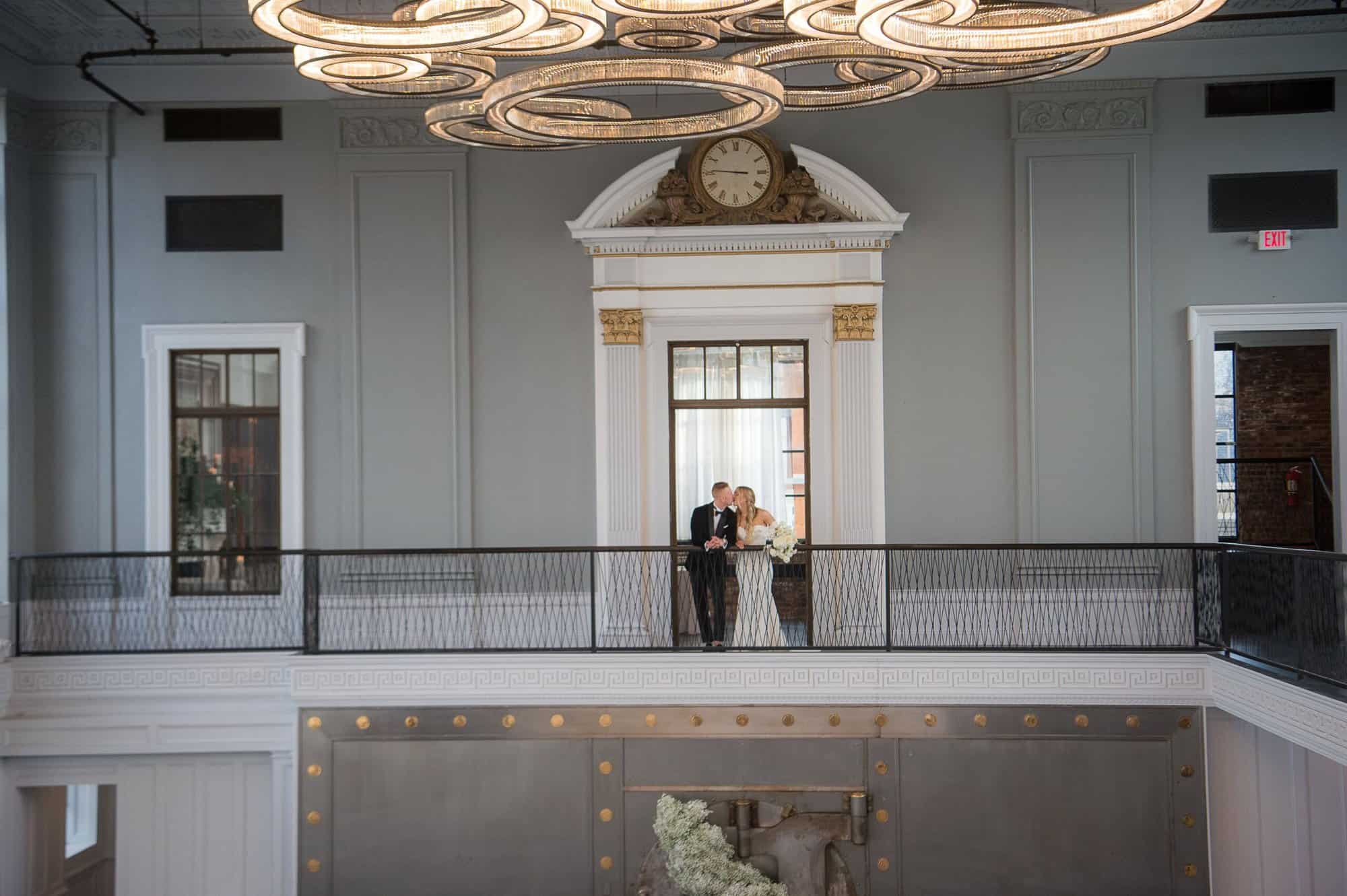 This neoclassical bank space features marble columns, soaring windows, towering ceilings, and a wraparound mezzanine for cocktail hour. Elements of brass, marble, the iconic Bank Vault Door, and the floating chandelier sculpture combine to impress and delight the senses, promising celebrations never to be forgotten.
