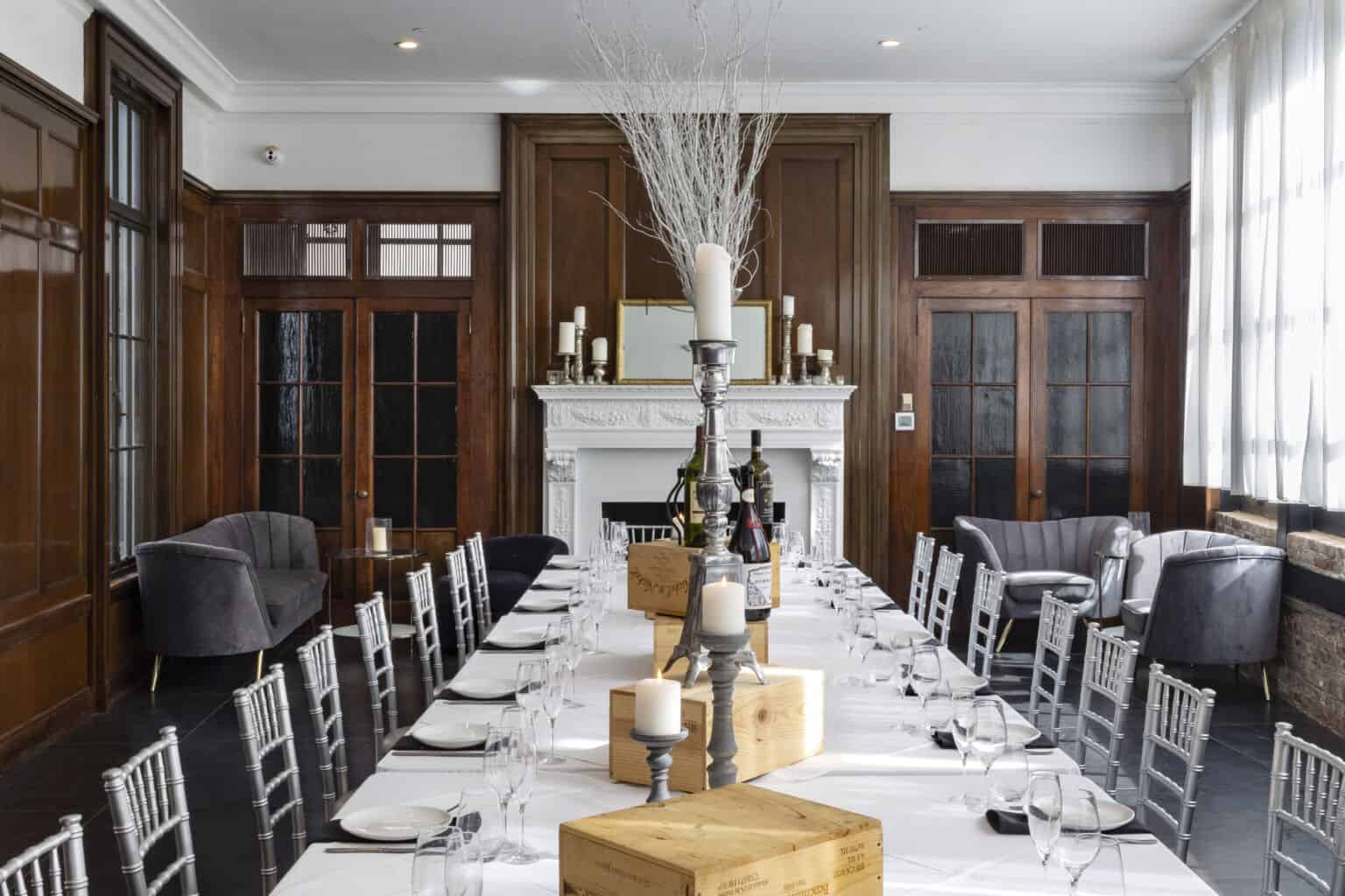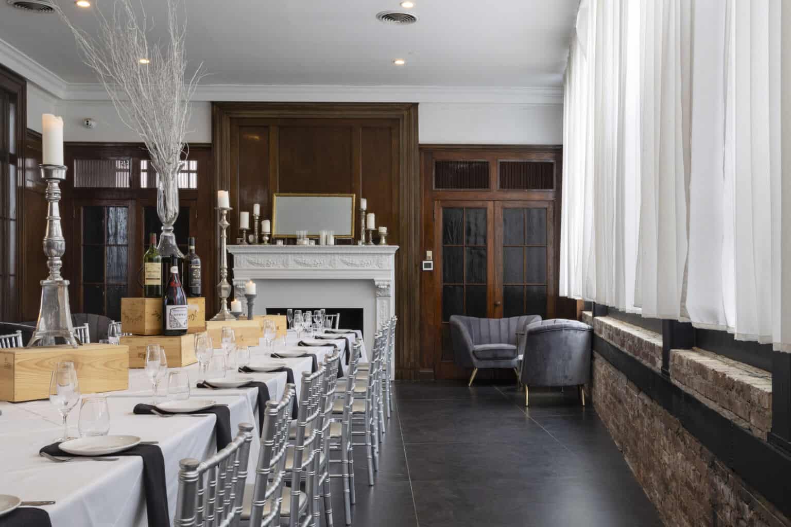 This versatile second-level, event space overlooks the majestic Treasury. Black Marble flooring and warm Mahogany details adorn the fireplace of this historical gem. Perfect for groups up to 40 to enjoy Felina’s award-winning cuisine.