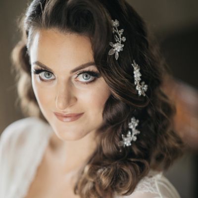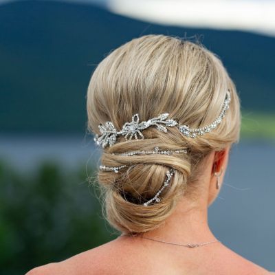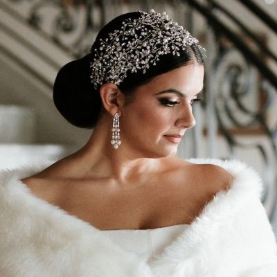 The process starts by sending photos of your wedding gown with inspiration pics of your hairstyle and accessories. Then you will have a phone, virtual or in store consultation, exchange ideas and share each of your visions and then choose all of the design and style elements! After all of that the colors and measurements will be fine-tuned. They will be with you every step of the way ensuring your headpiece looks perfect on your wedding day!