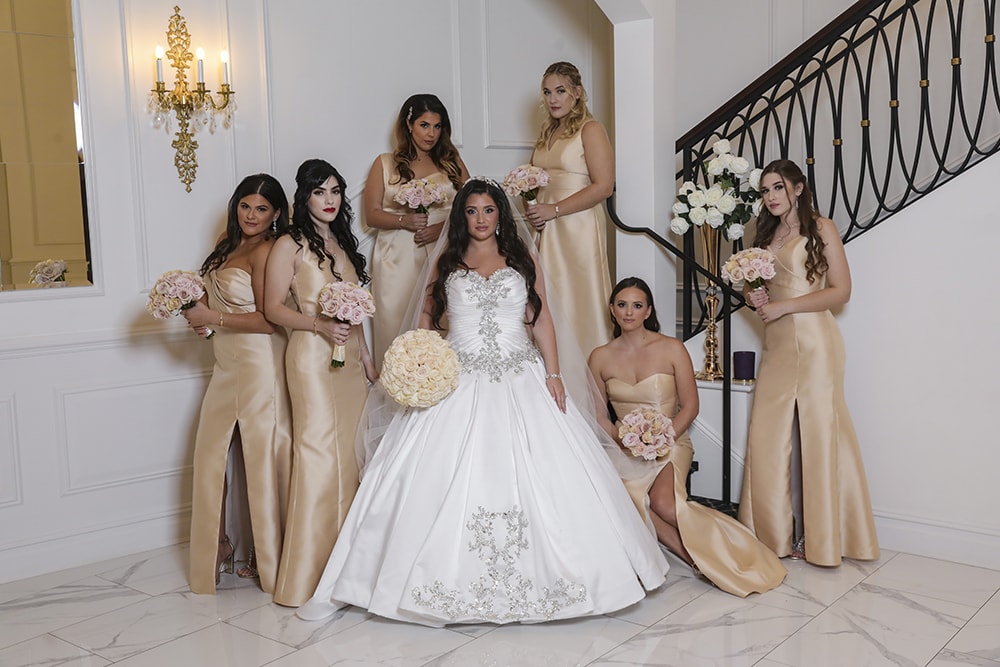 Located in Hawthorne, Macaluso’s has been in business since 1968. An elegant, majestic and glamorous venue with Mediterranean charm, Macaluso’s is renowned for their unparalleled level of service and superior quality of food. The venue’s magnificent courtyard features landscaped grounds and seven Corinthian columns that serve as a stunning backdrop for photos during the day or at night when the area is lit up. Indoors, the venue has chandeliers everywhere and many gold details which lend a very regal and extravagant vibe to your big day.