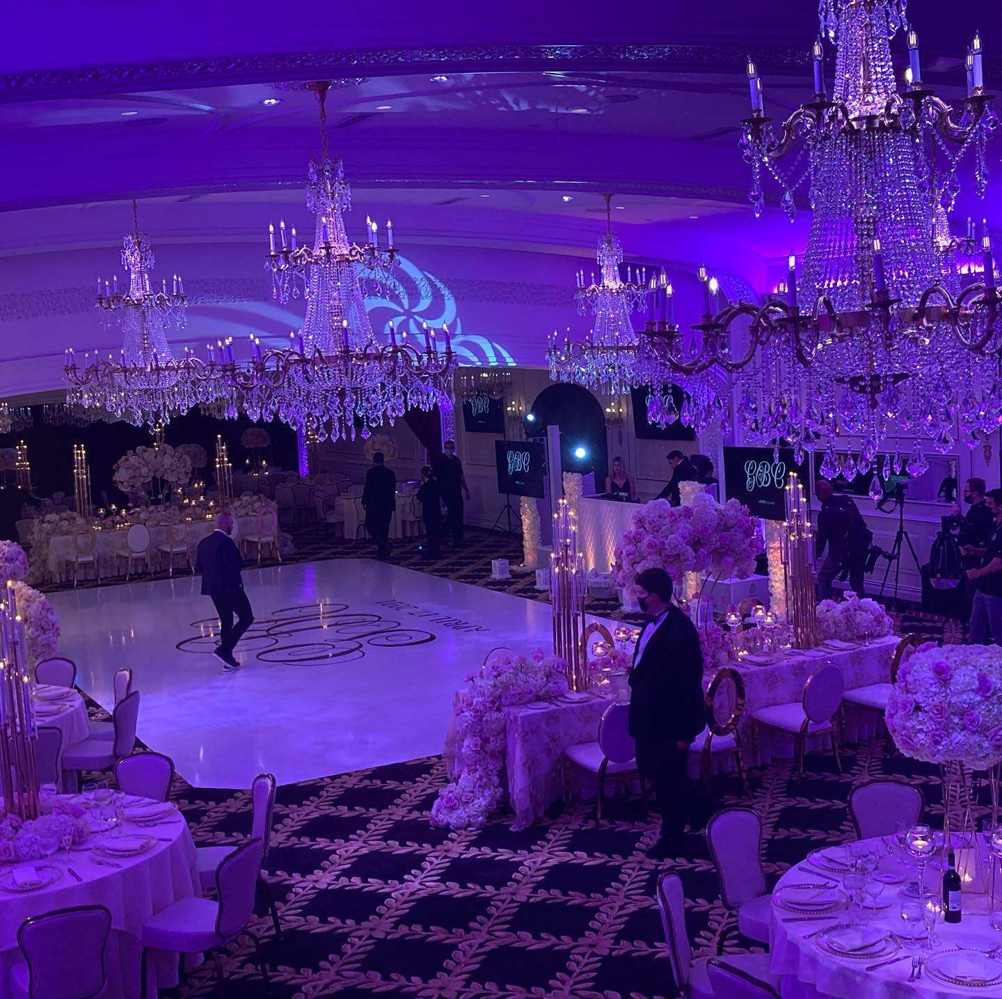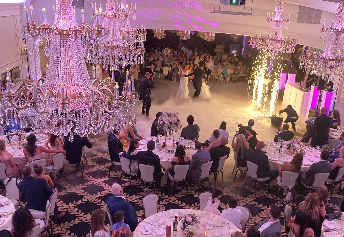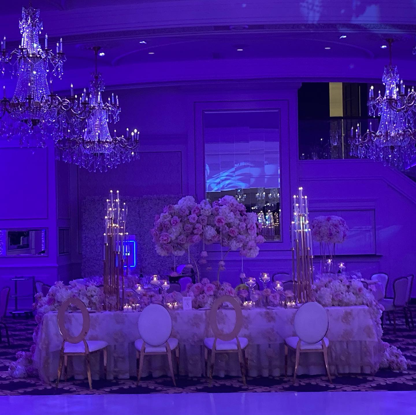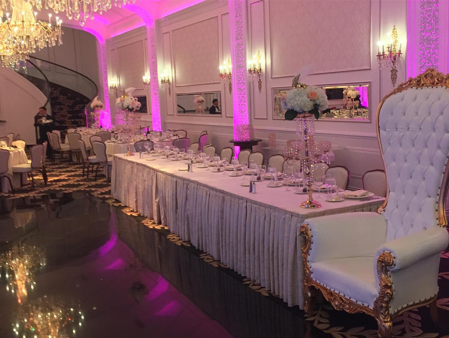 - The Portofino room features numerous chandeliers, a curved staircase and a dancefloor in the center of the room. This room can accommodate up to 350 guests