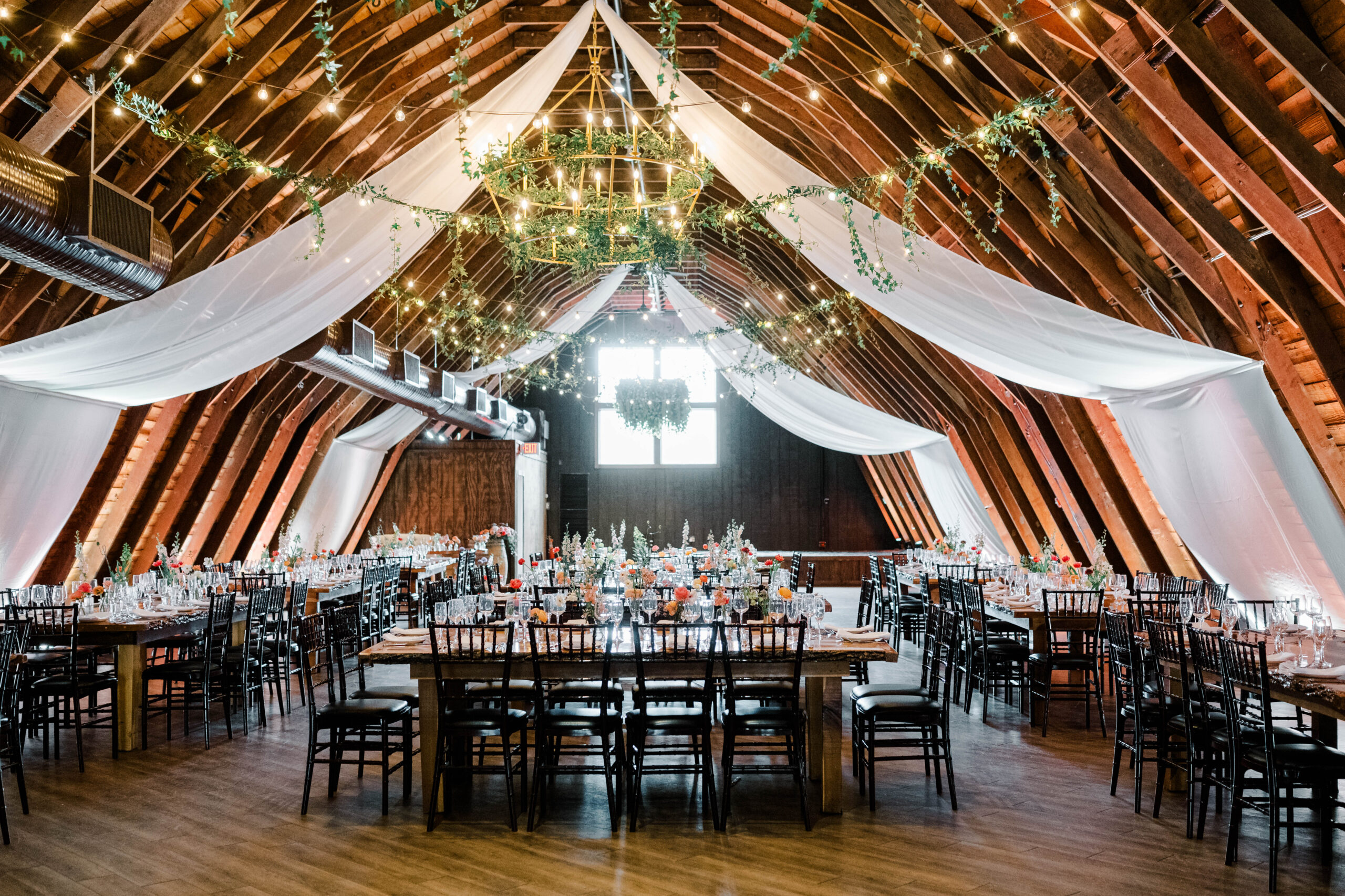 - The Barn, originally built in the late 1930s, blends historic charm with modern rustic elegance. With its iconic silos, a fully covered patio with outdoor bar, and a vaulted reception space enhanced with built-in uplighting, The Barn accommodates up to 200 seated guests and offers an effortlessly warm and inviting setting.