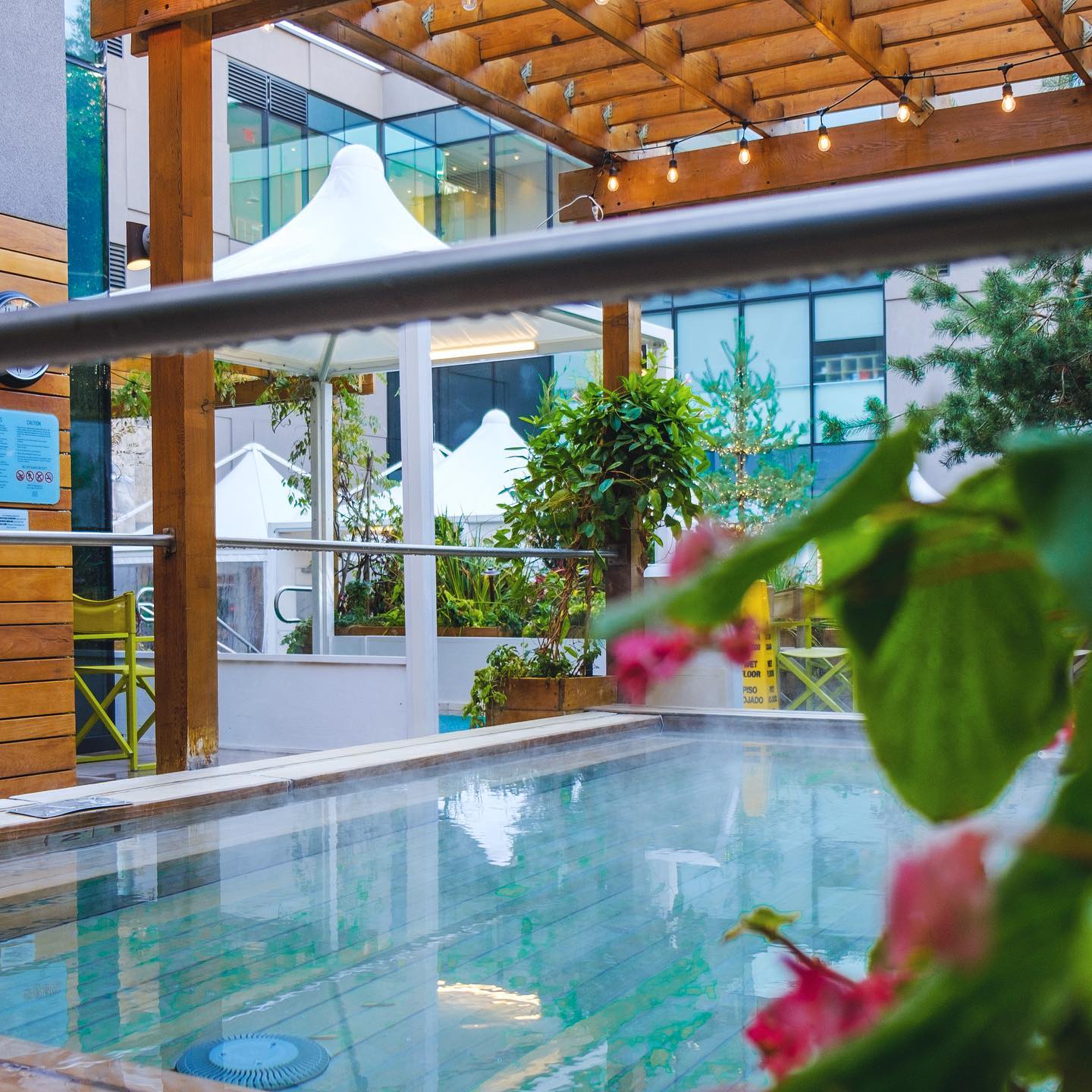 You can plan your visit to include spa services, a hotel stay and/or a daily admission pass that includes access to saunas and hot stone beds, indoor and outdoor lounge areas as well as outdoor amenities. SoJo Spa Club’s outdoor amenities include heated pools and baths that are open year-round with the infinity pool and cabanas offering a spectacular panoramic view of the Manhattan skyline.
