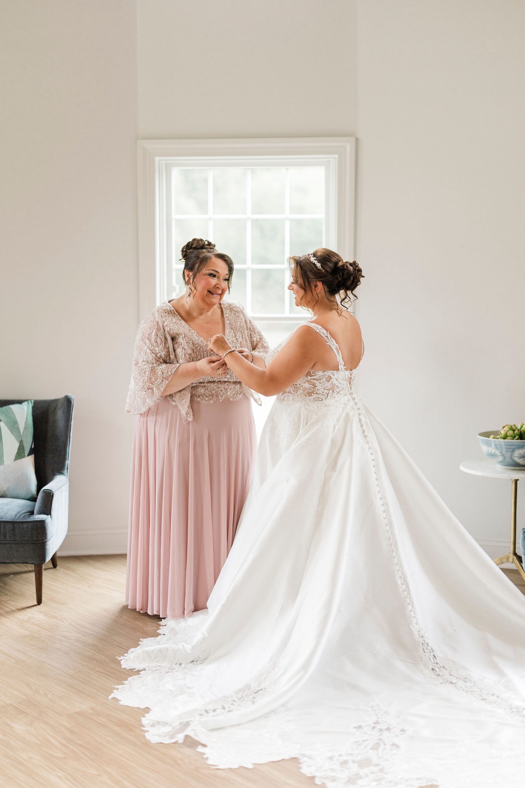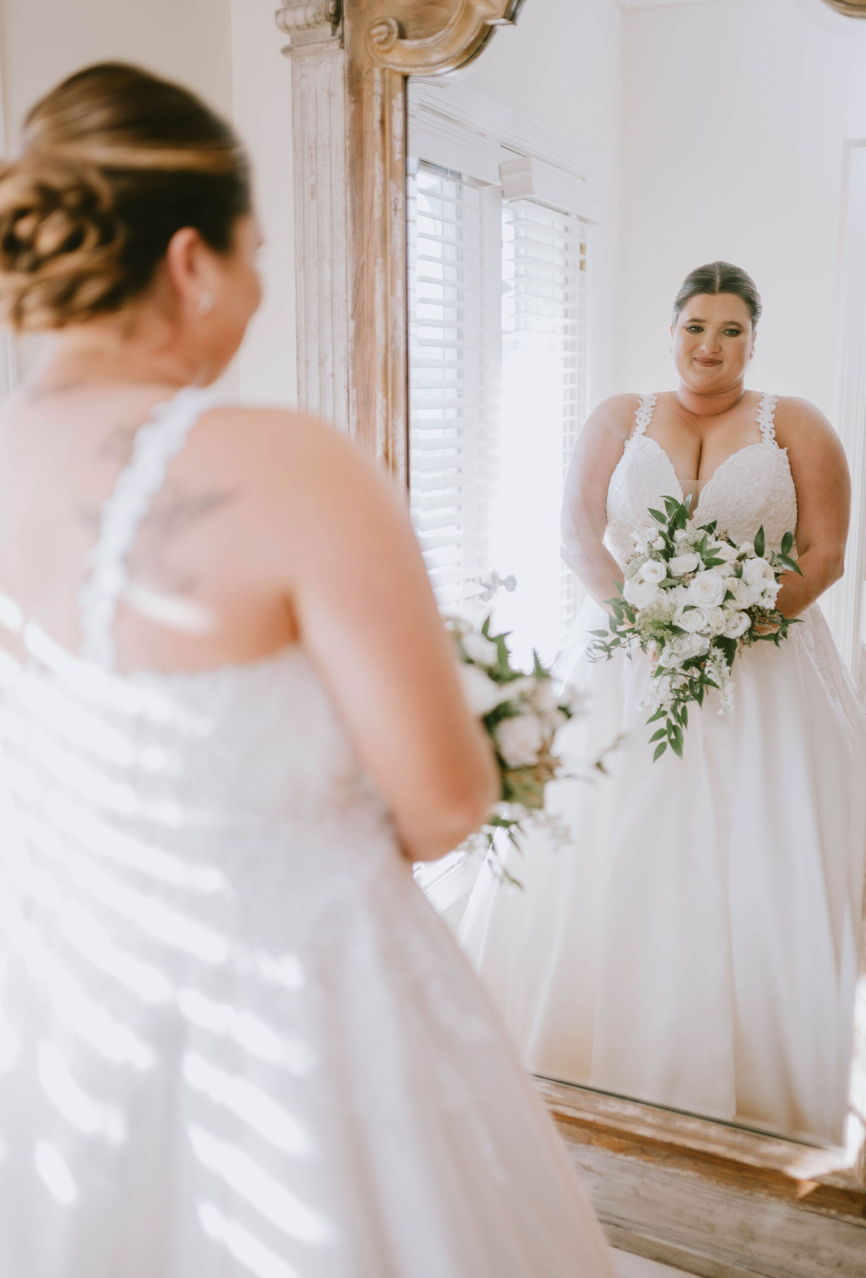 The Curvy Bride carries exclusively sizes 14-34 in store and can customize larger sizing if needed. They work with third party seamstresses that will meet you at their boutique for alterations. They also partner with a gown preservation company who will clean and preserve your gown.