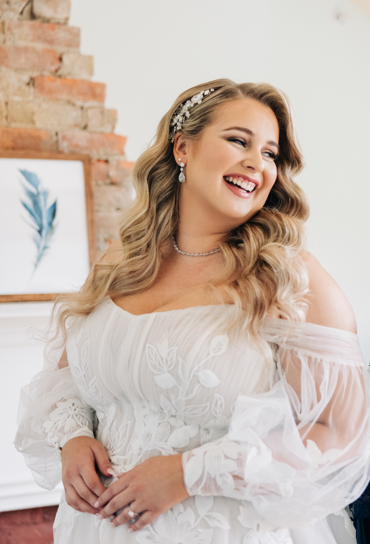 “I was so excited to go wedding dress shopping with my mom and sister, several bridesmaids, and my fiancé’s mom and sisters,” says the Curvy Bride owner Michelle Files. “We had planned on going to a local bridal shop where I could try on dresses and display how gorgeous they were to my entourage, followed by an afternoon lunch. What I didn’t realize was that the local bridal shop did not carry anything larger than a few size 16s, and being a street size 16/18, I was quite embarrassed that I could not even try on one dress. That’s when I realized there’s a real need for a boutique that caters to the plus size woman, especially when most bridal shops only carry a handful of plus size dresses, and these dresses run small in the first place! And also private appointment settings, where you don’t have to display to the world, only to whomever you’d like.”