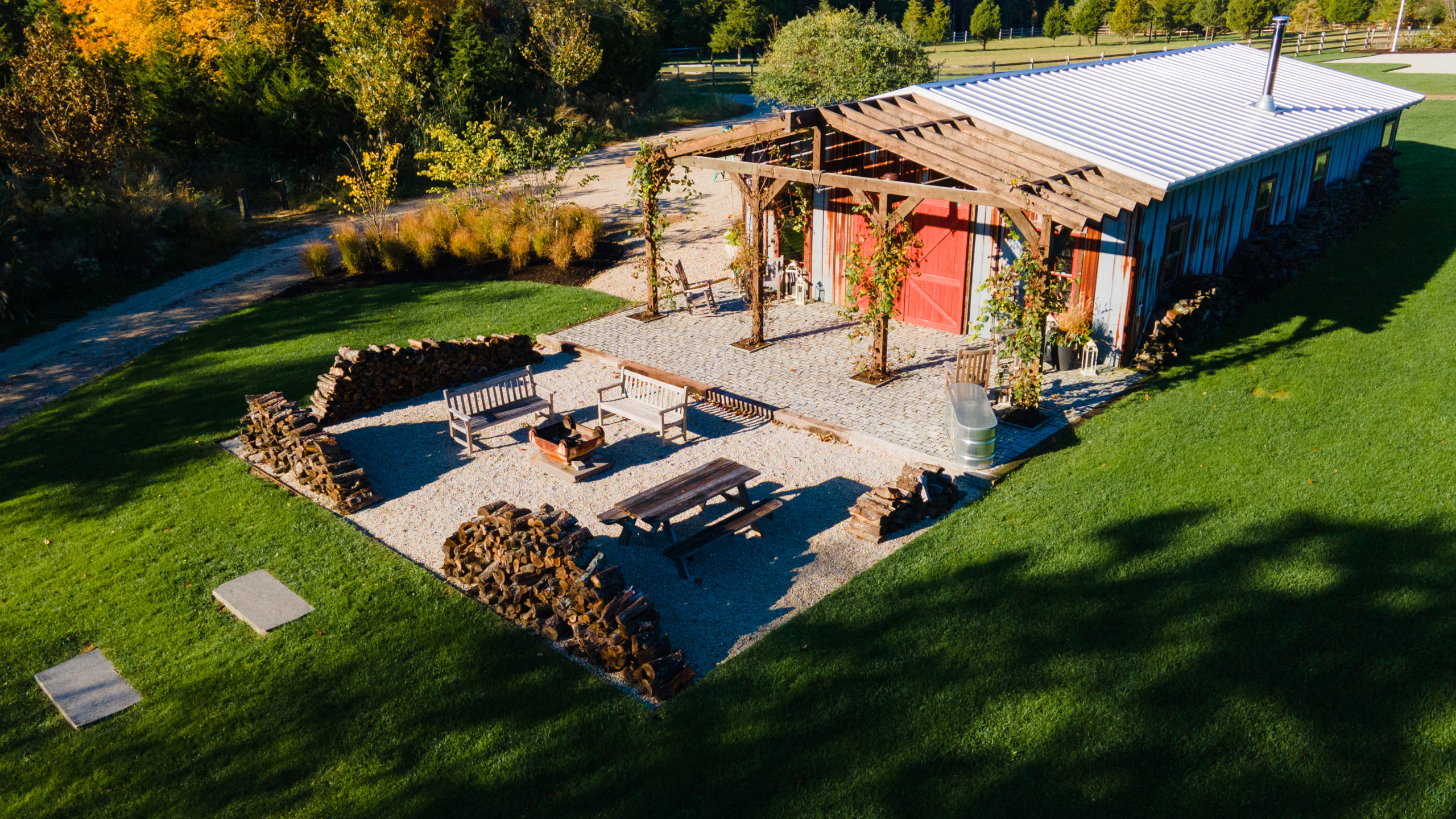 - Expansive sliding barn doors for a seamless flow between indoor and outdoor spaces