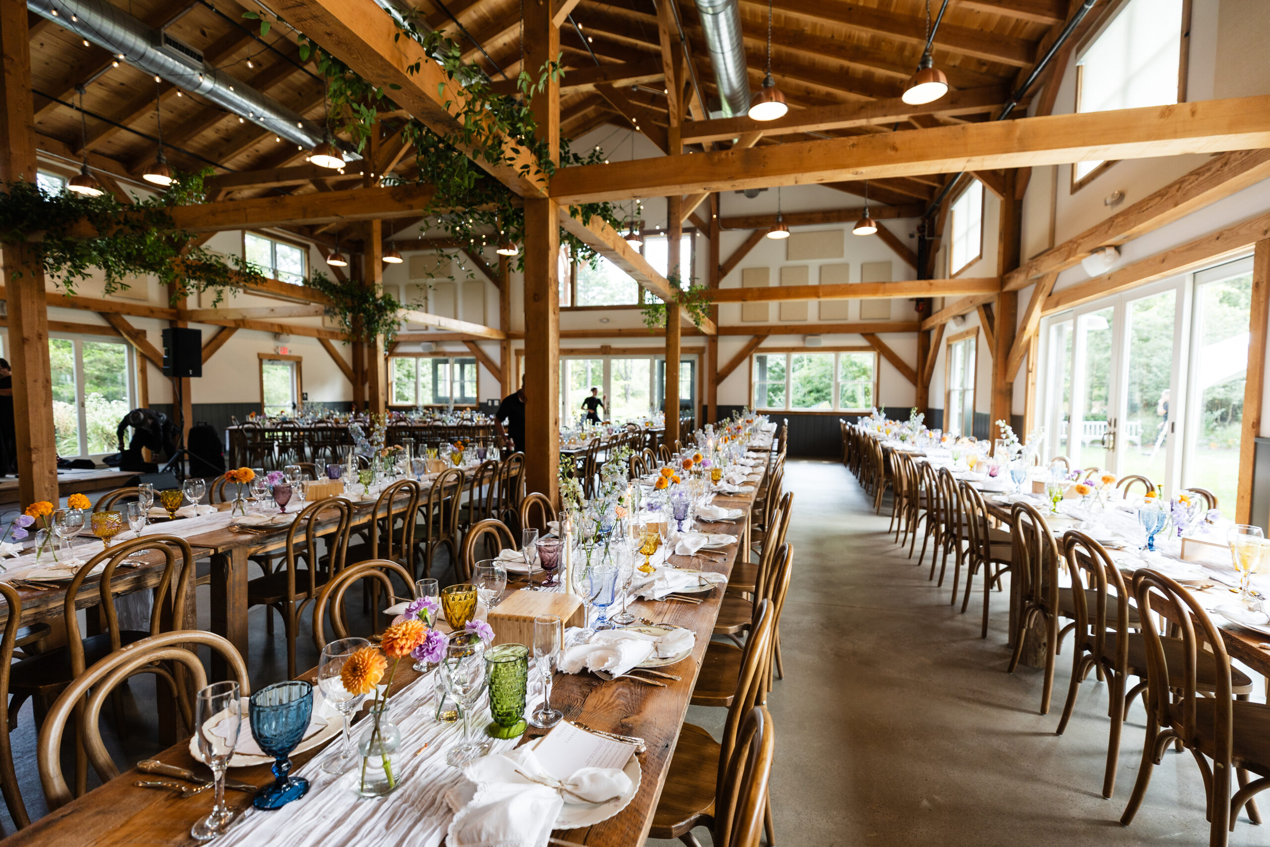 Welcome your guests into The Forsythe Barn, their custom timber-frame reception space where rustic charm meets timeless elegance.