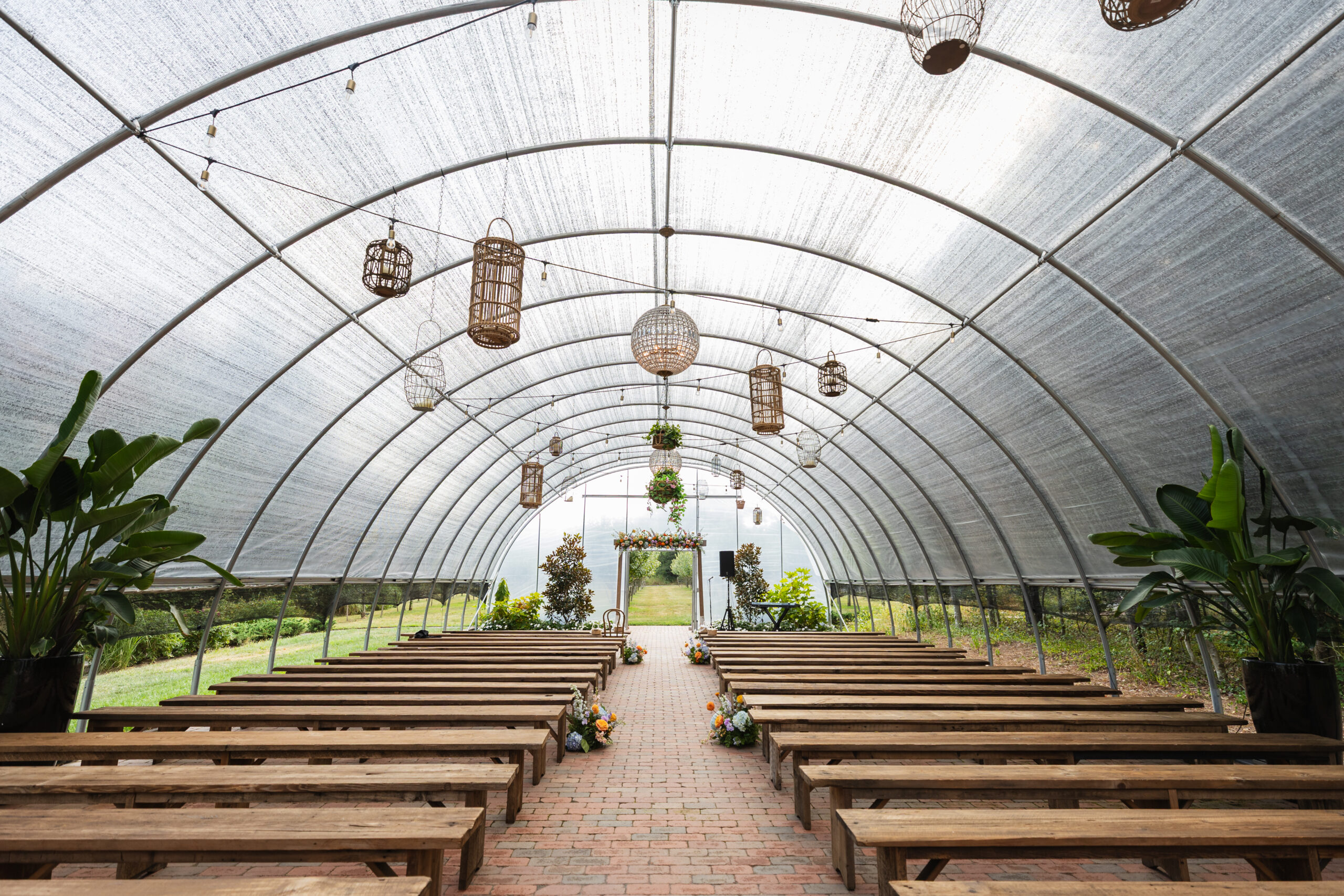 Step into the newly renovated Greenhouse, where lush greenery and chandeliers create a dreamy, intimate setting for your ceremony. With golden-hour sunlight and the apple orchard as a backdrop, this space is breathtaking.