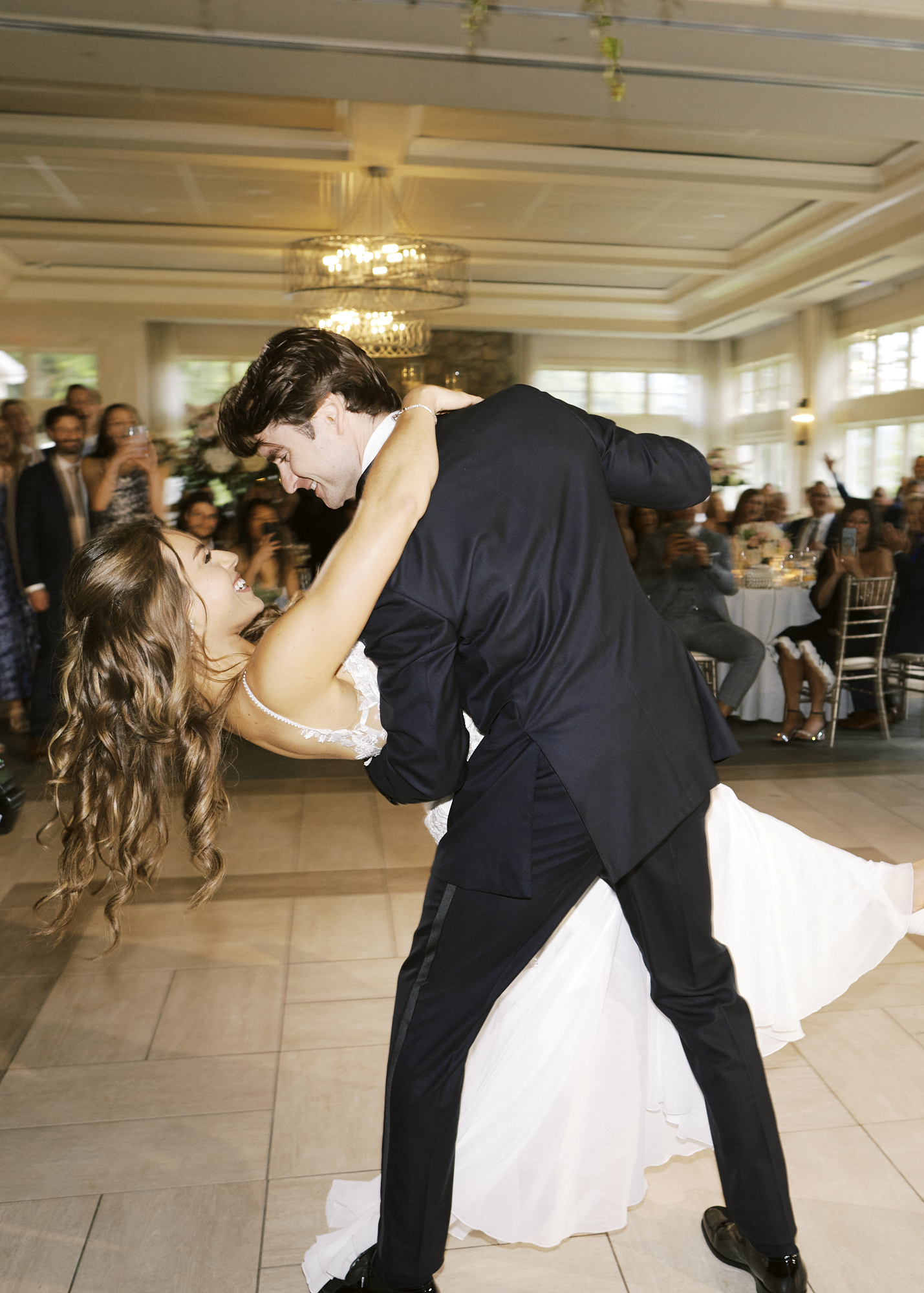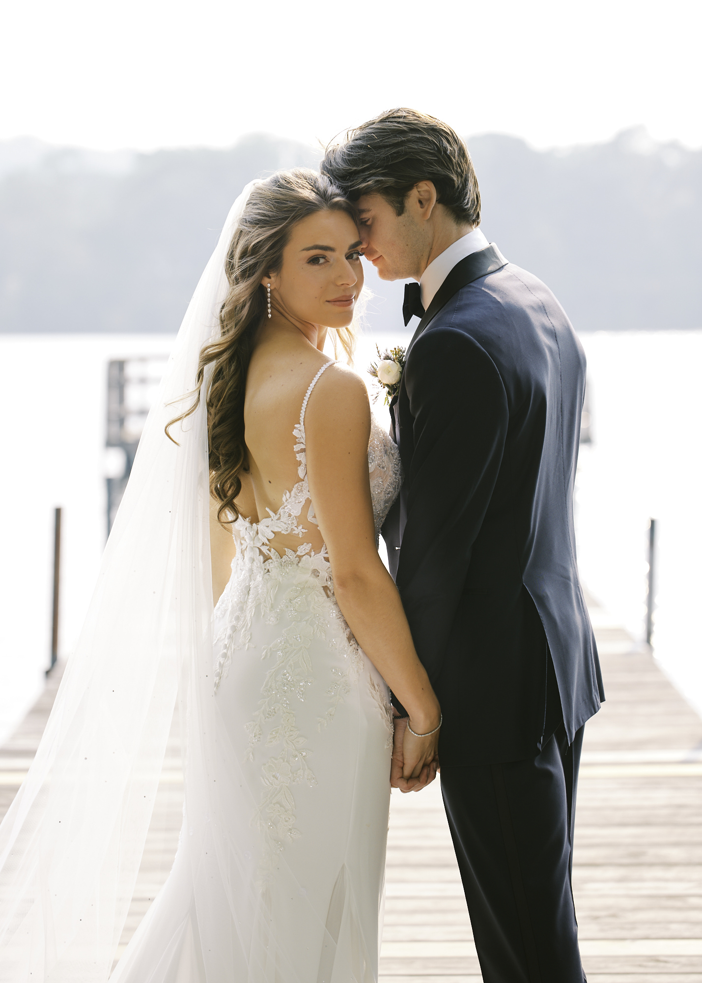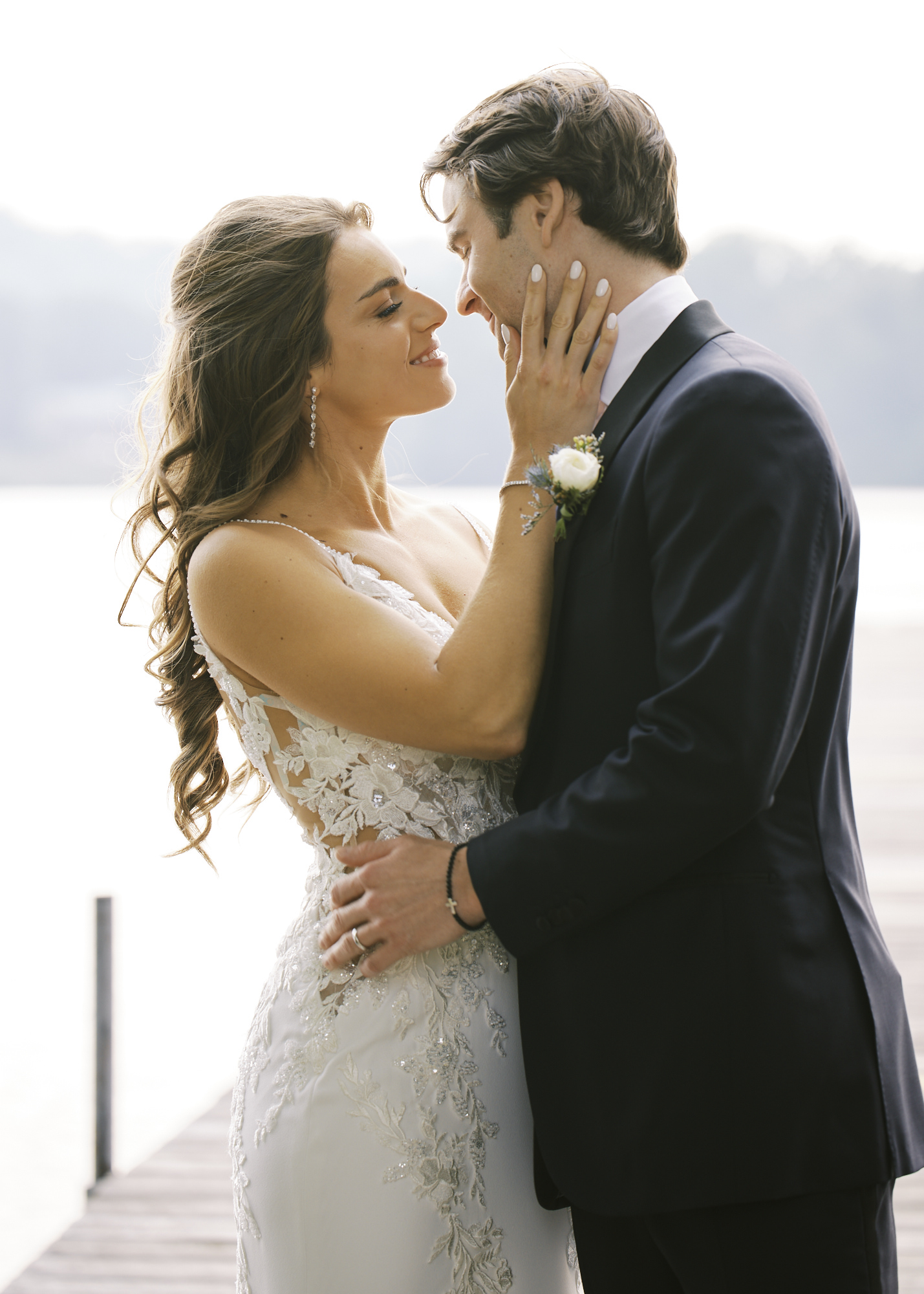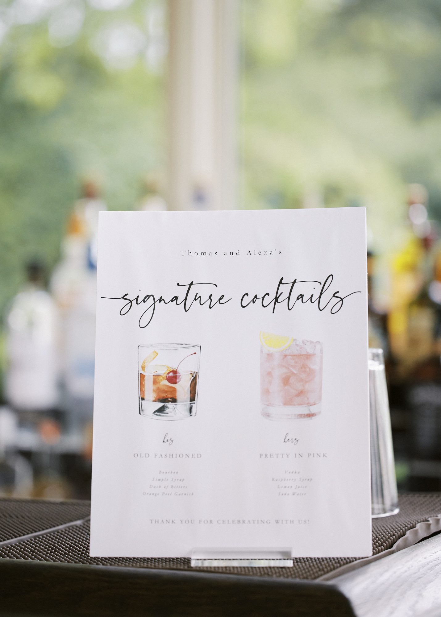 “We love the elegant ballroom that still has a rustic touch,” says Alexa. “Our favorite part is the nature surrounding the venue – the trees lining the lake took our breath away. We also love to play tennis, so the tennis club is a fitting venue for us!”