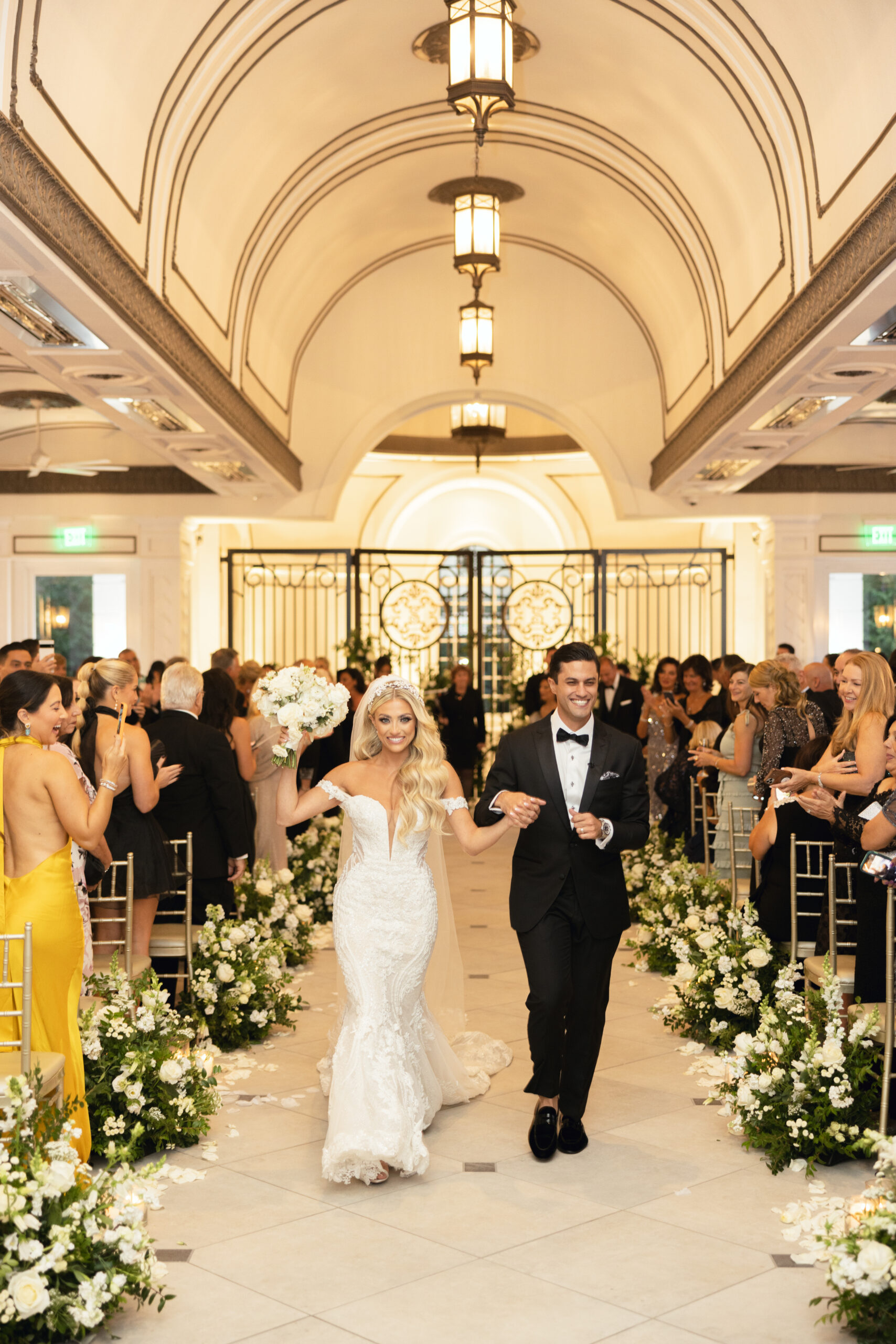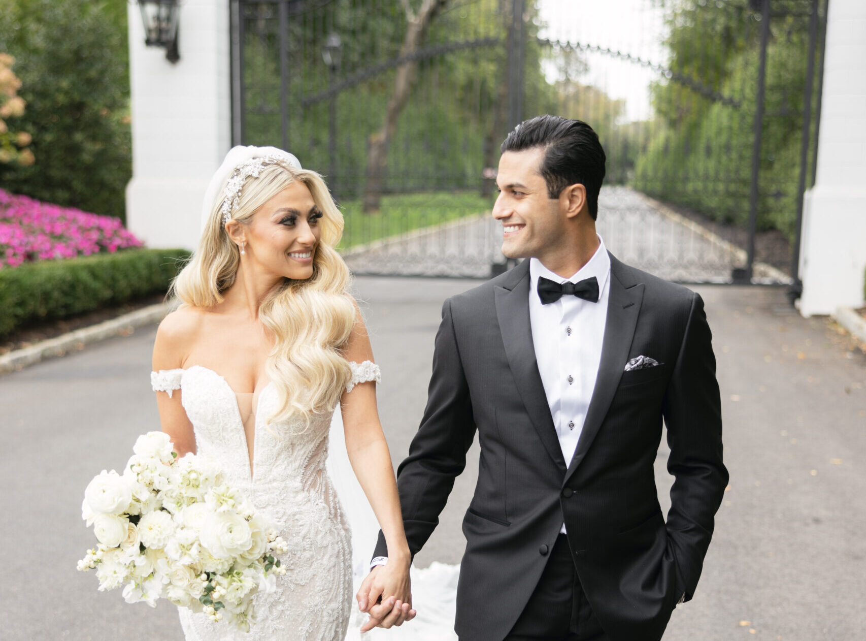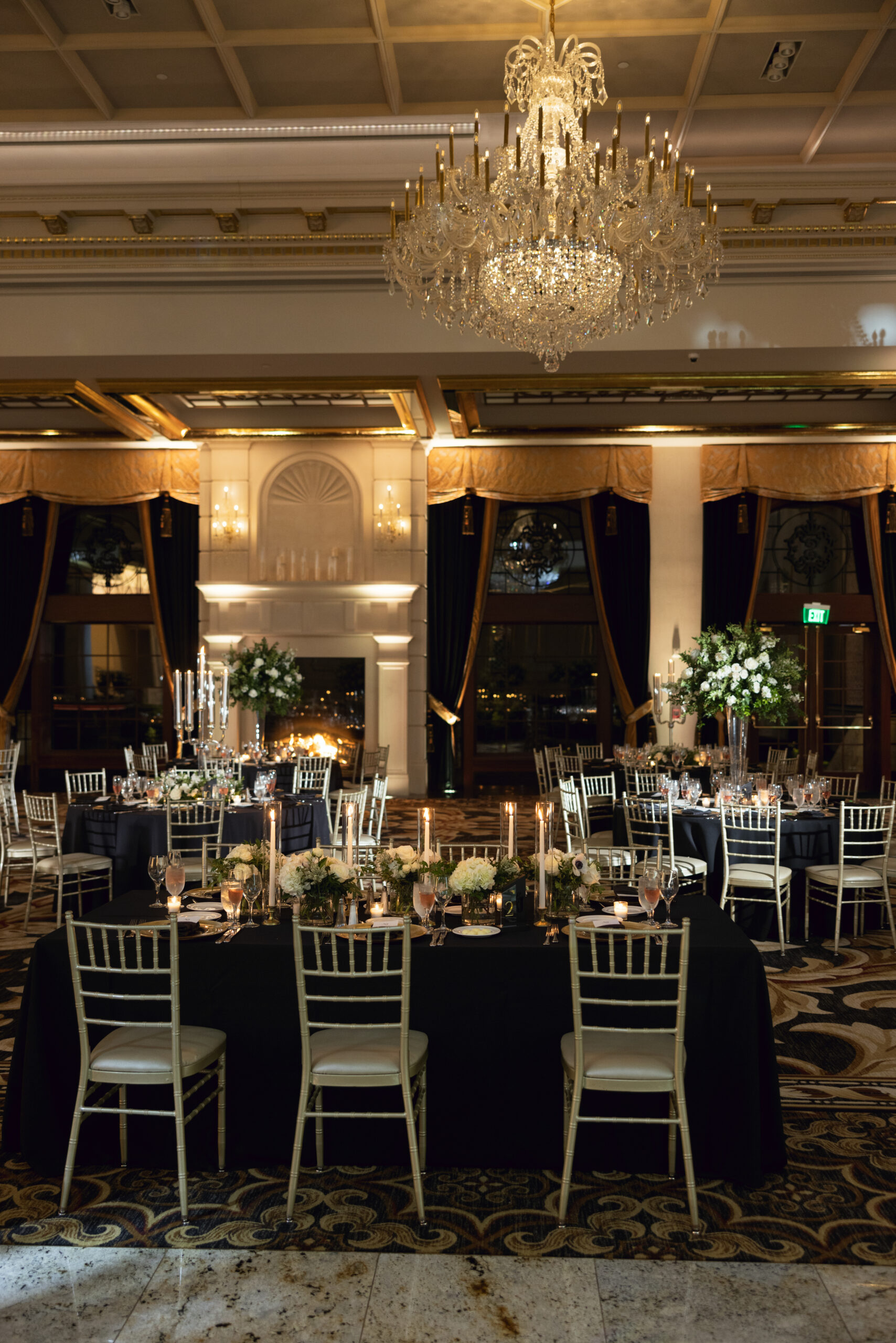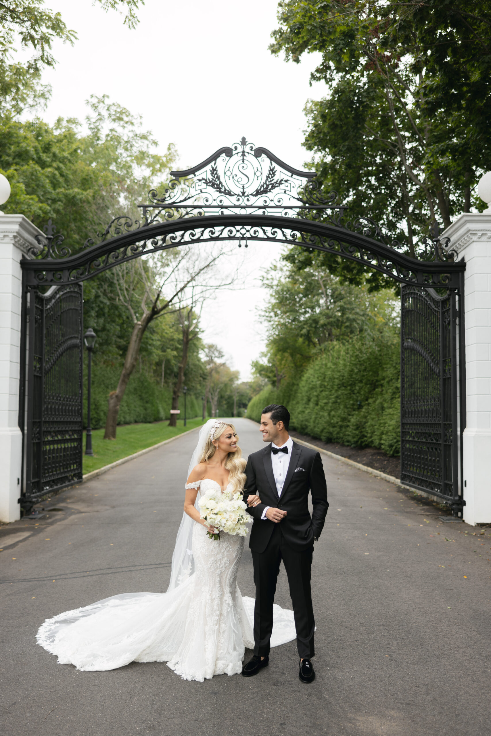 Joe and Alex wanted their September 30, 2022 wedding to feel like they were getting married in their mansion in old school New York. Romantic flowers were chosen to cut the masculine black, gold and white tones of the venue and they added a “grew here” feel as if they were in their own garden. Touches of butterflies also lined the brides veil and signage as a tribute to those who couldn’t be there with them that day. Their first dance song was “I Guess I’m In Love” by Clinton Kane.
