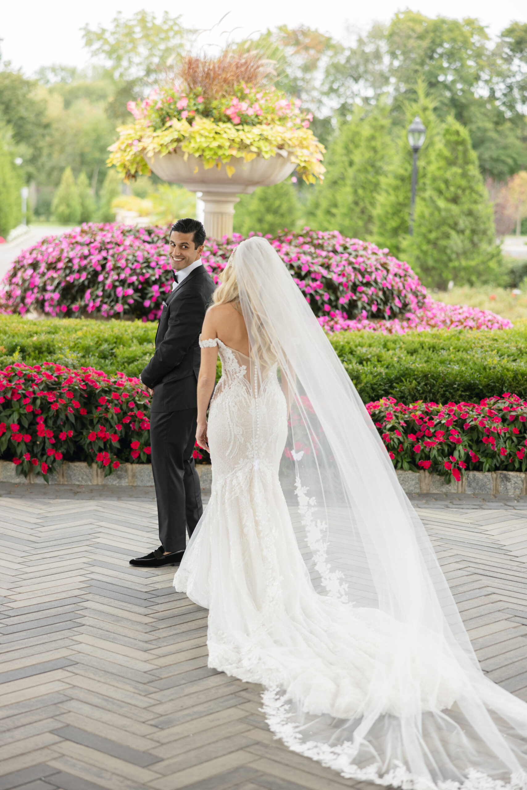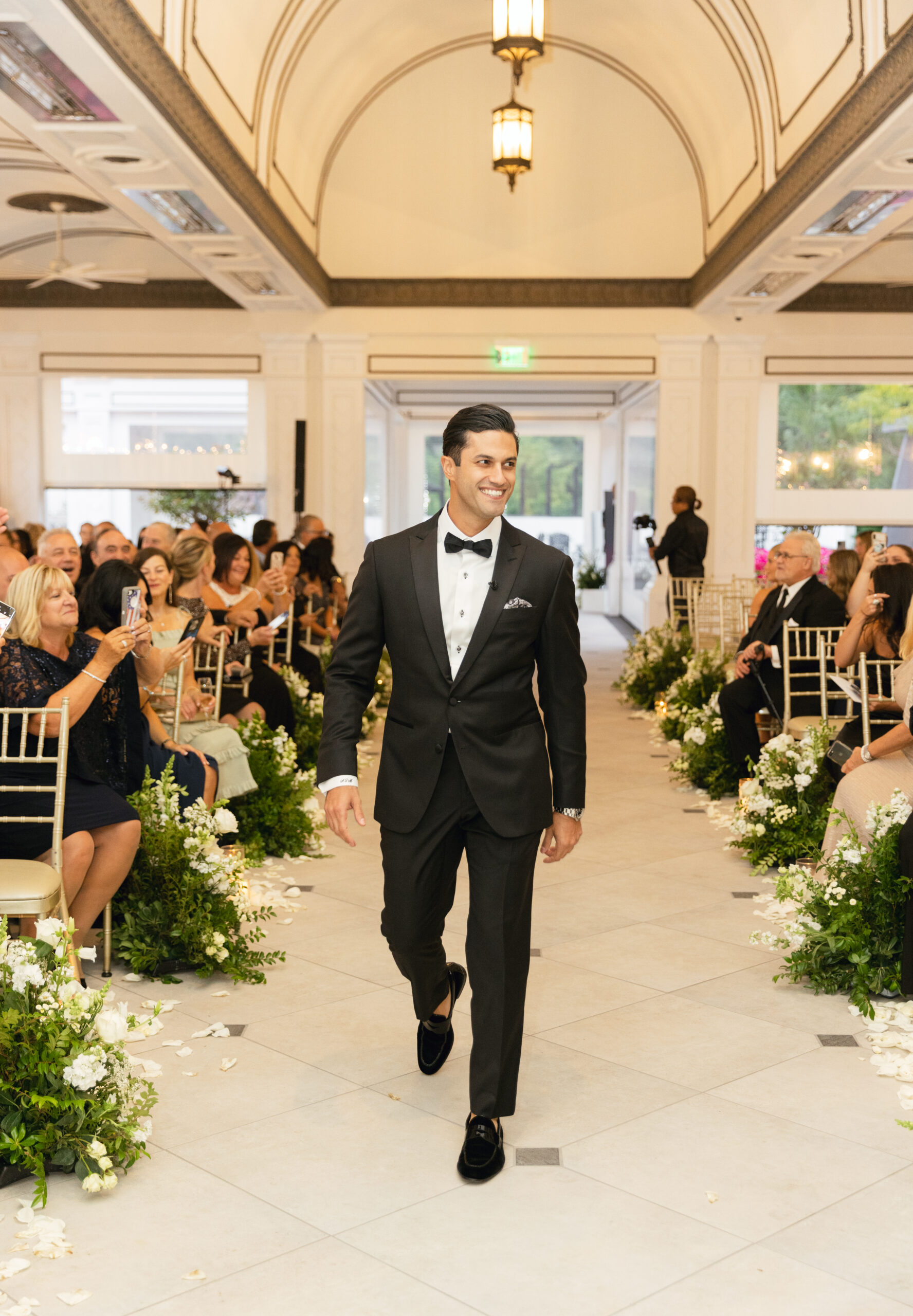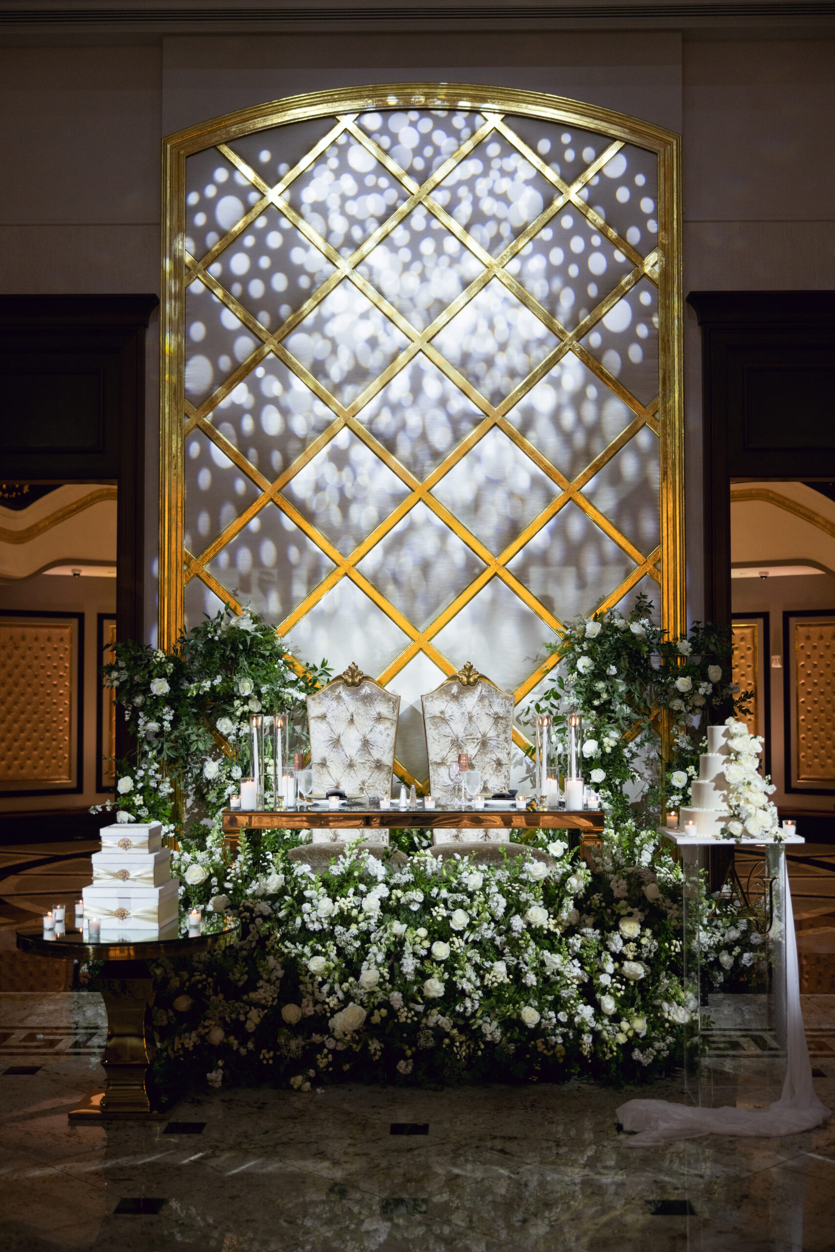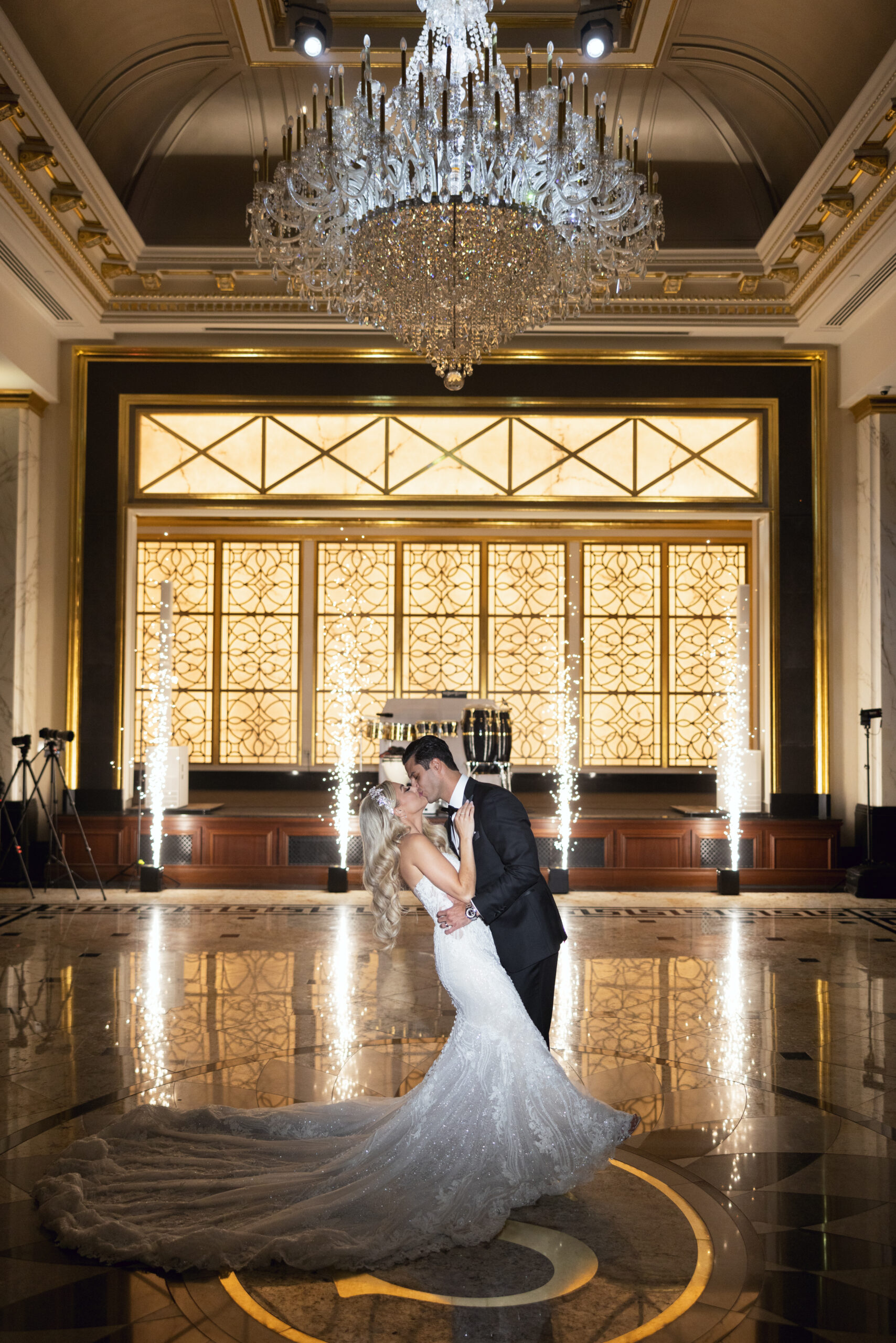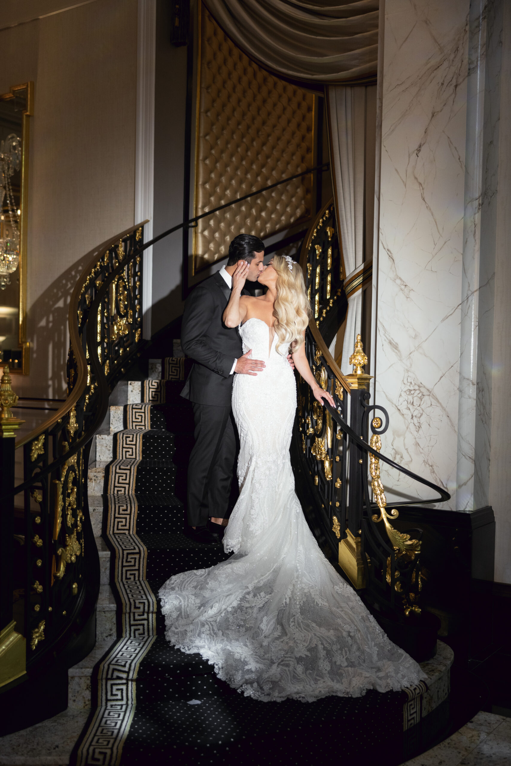 Joe and Alex wanted their September 30, 2022 wedding to feel like they were getting married in their mansion in old school New York. Romantic flowers were chosen to cut the masculine black, gold and white tones of the venue and they added a “grew here” feel as if they were in their own garden. Touches of butterflies also lined the brides veil and signage as a tribute to those who couldn’t be there with them that day. Their first dance song was “I Guess I’m In Love” by Clinton Kane.