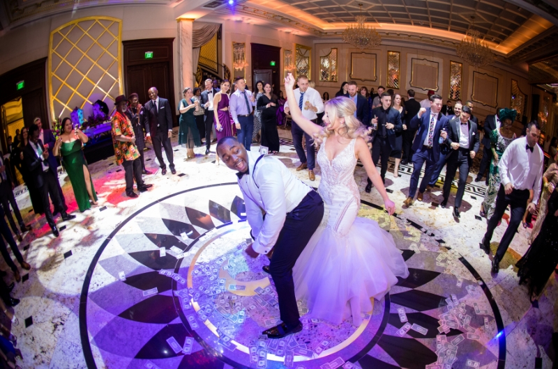 Black and gold were the featured colors throughout Amy and Udoka’s big day. Their regal affair at the Shadowbrook at Shrewsbury included an elaborate cocktail hour and fun after party.