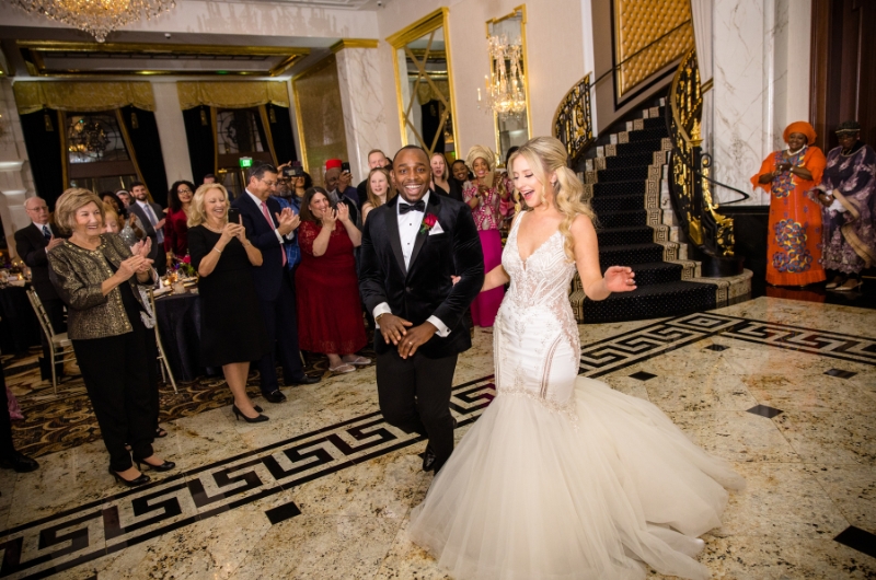“My favorite moment was coming down the grand staircase as our MC announced us as husband and wife entering our reception,” says Amy. “We had the absolute best MC who had the entire crowd on the dance floor for our entrance. I had never seen anything like it. People were so hyped up for us! We will never forget that moment of looking at each other right before and telling each other to have fun and enjoy every moment.”