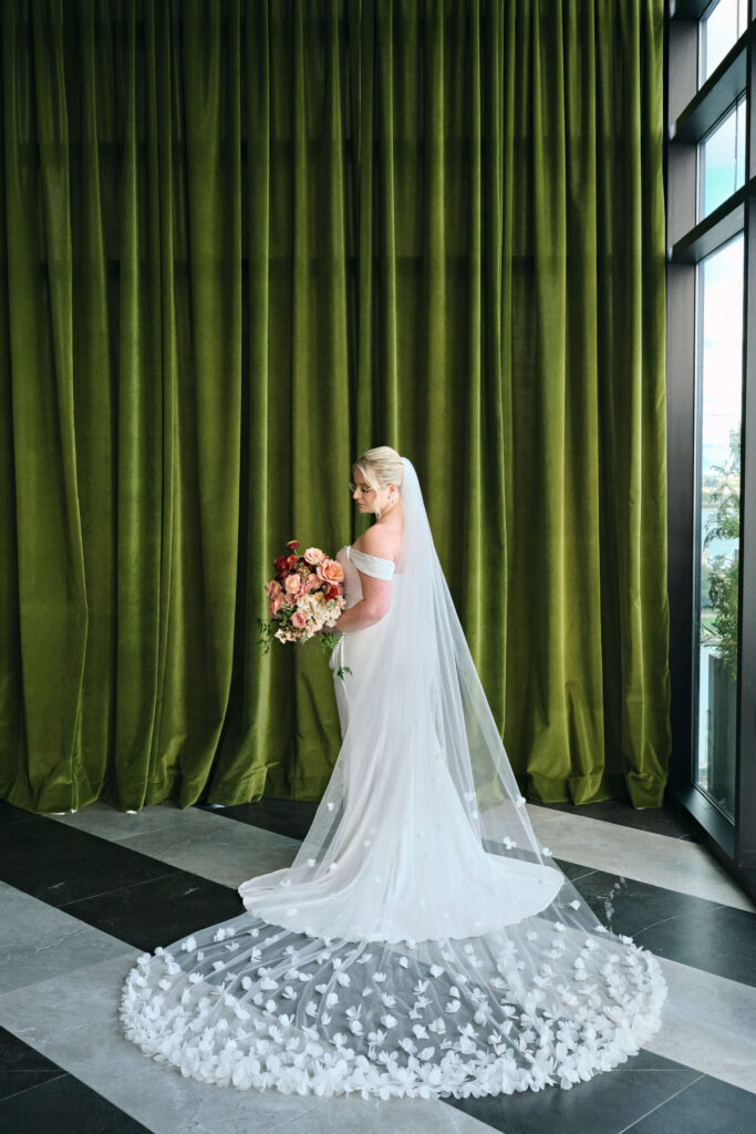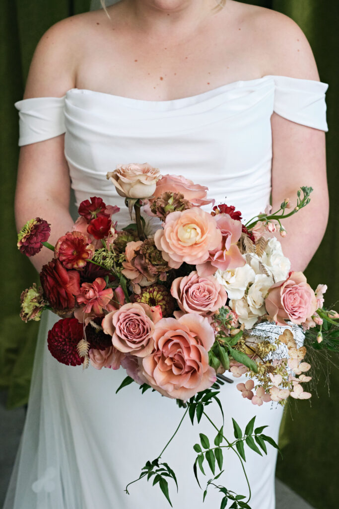 Zoe never had the chance to meet Adi’s mom, as the couple met after she passed away. Adi’s siblings gave Zoe a bow from their mom’s wedding dress, and she used it around her bouquet. Having a piece of her wedding dress be part of their day was very special.