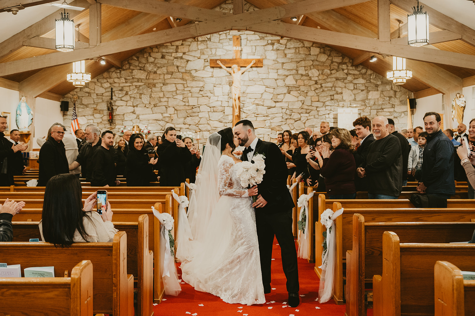 “Our wedding day was everything we hoped for—timeless, romantic, and just so us,” says Alyssa. “We went for a classic look with soft gold accents, mirrors as details, roses, baby’s breath, and white anemones.”