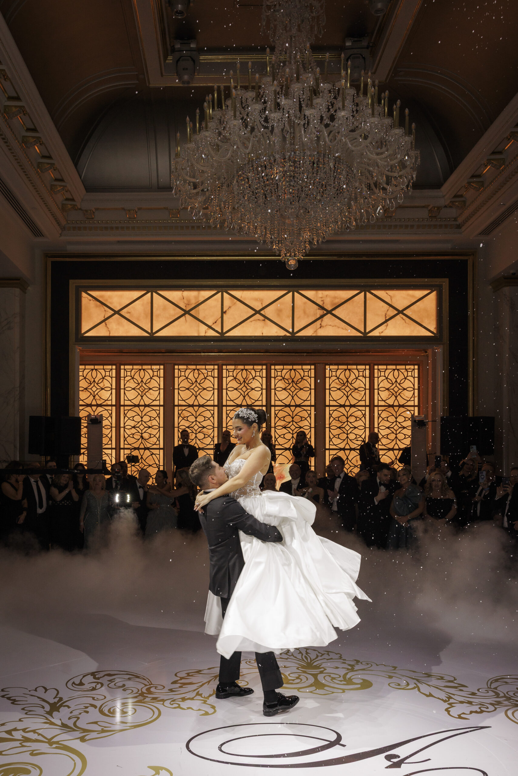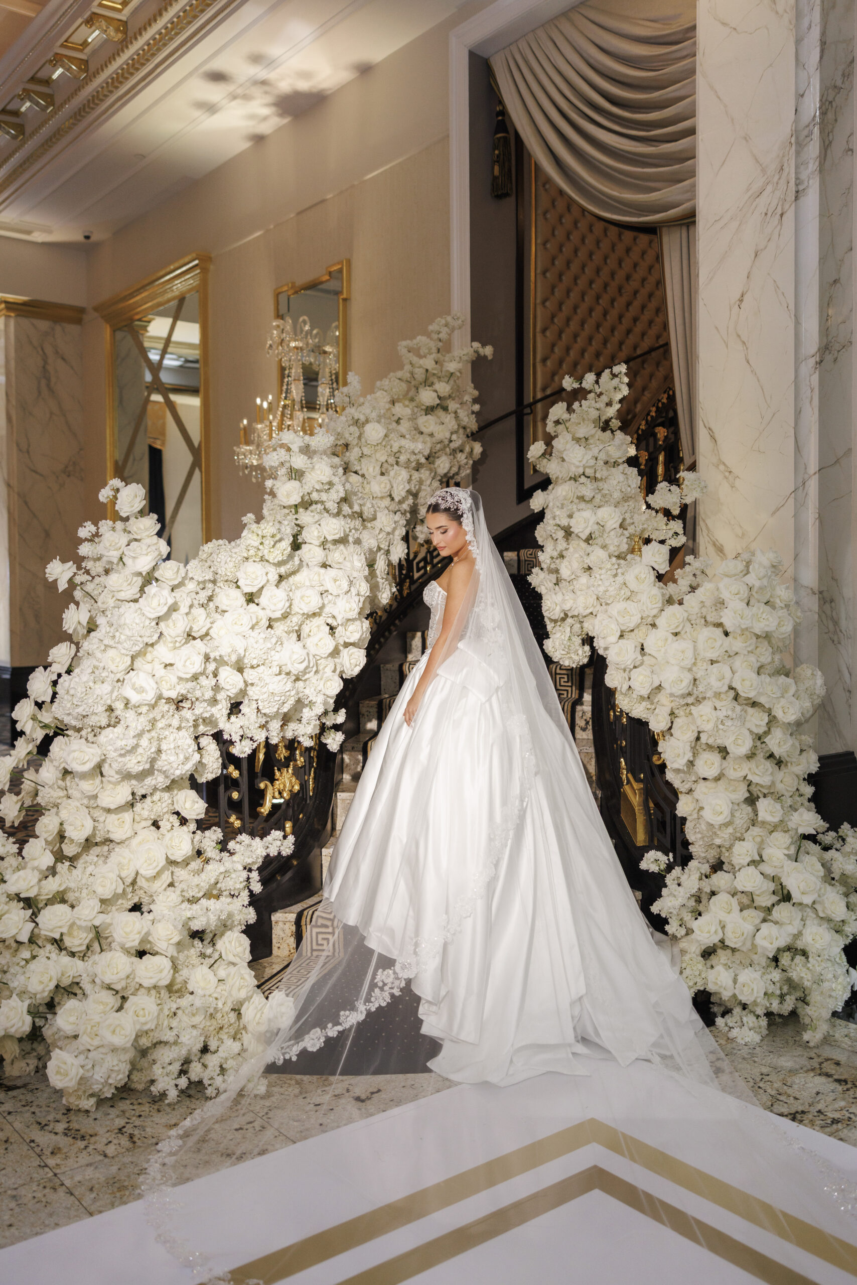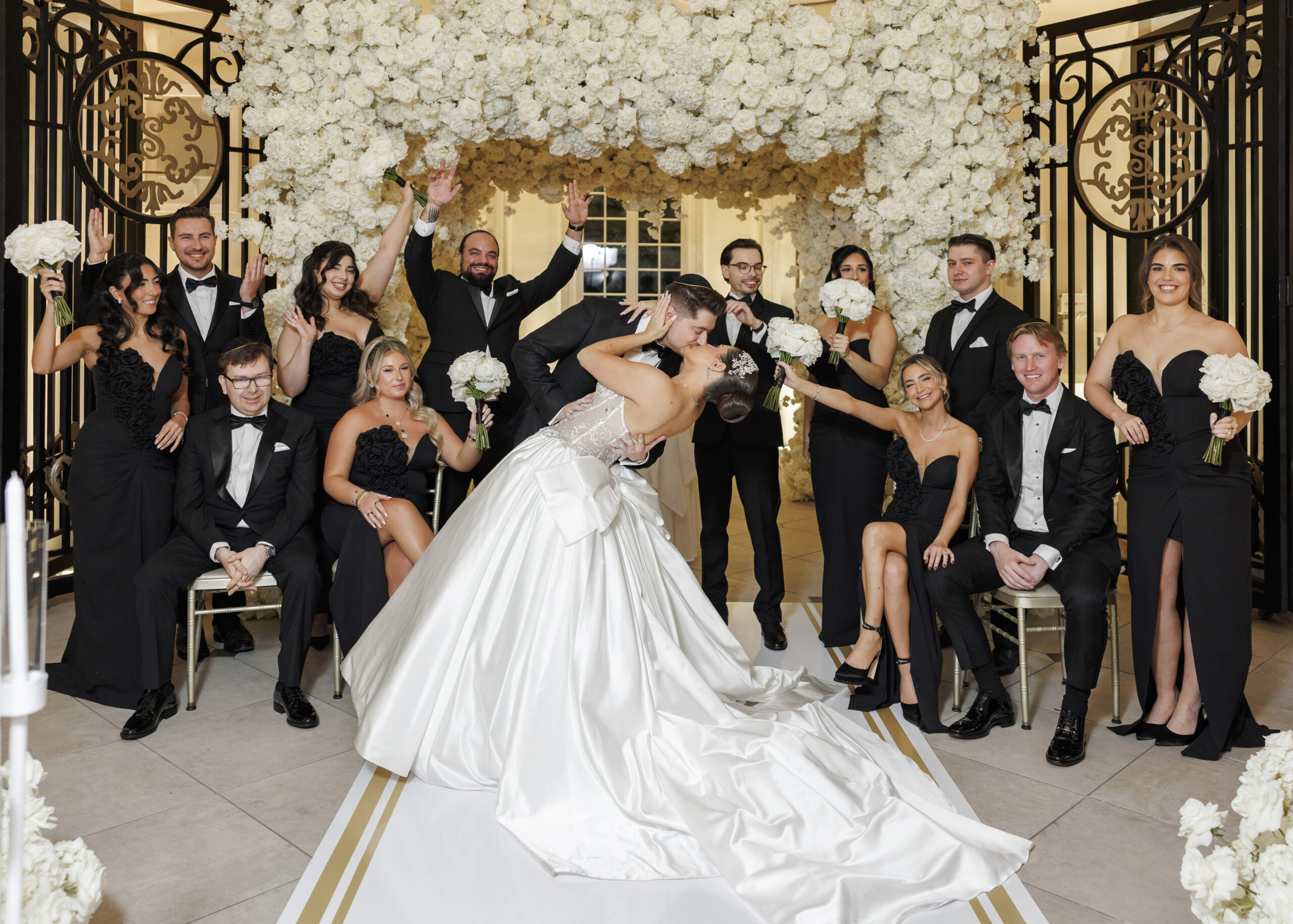 Ashley and Jonathan’s November 30, 2025, at Shadowbrook at Shrewsbury was the picture of timeless elegance — and fluffy white roses and hydrangeas by Dahlia Floral & Event Design were at the heart of every detail. From a classic black, gold and white color palette to a lavish cocktail hour overflowing with seafood and a sprawling Viennese dessert table, the couple leaned into the regal grandeur that Shadowbrook does best. The day was filled with deeply personal moments, too — none more moving than Ashley dancing with her father while her mother sang live. Photographer-videographer team Natali & Kate was on hand to capture every unforgettable moment.